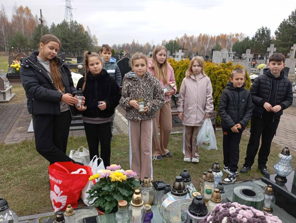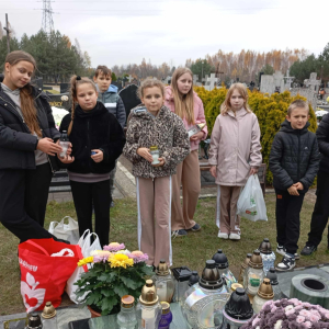 Uczniowie klasy V wraz z wychowawcą w ramach wyjątkowej akcji ”Znicz dla zapomnianych”, zorganizowanej przez Samorząd Uczniowski i Szkolny Wolontariat udali się na pobliski cmentarz parafialny, gdzie zapalili znicze na opuszczonych grobach.