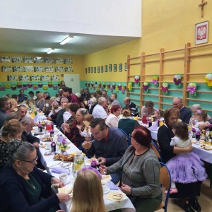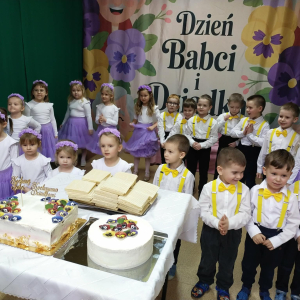Po części artystycznej przyszedł czas na wspólne świętowanie przy torcie i słodkościach, rozmowy, uśmiechy i przytulasy. Na zakończenie każde dziecko wręczyło swoim Babciom i Dziadkom mały, ale pełen serca upominek – sok aroniowy oraz kruche ciasteczka, jako symbol miłości i pamięci.