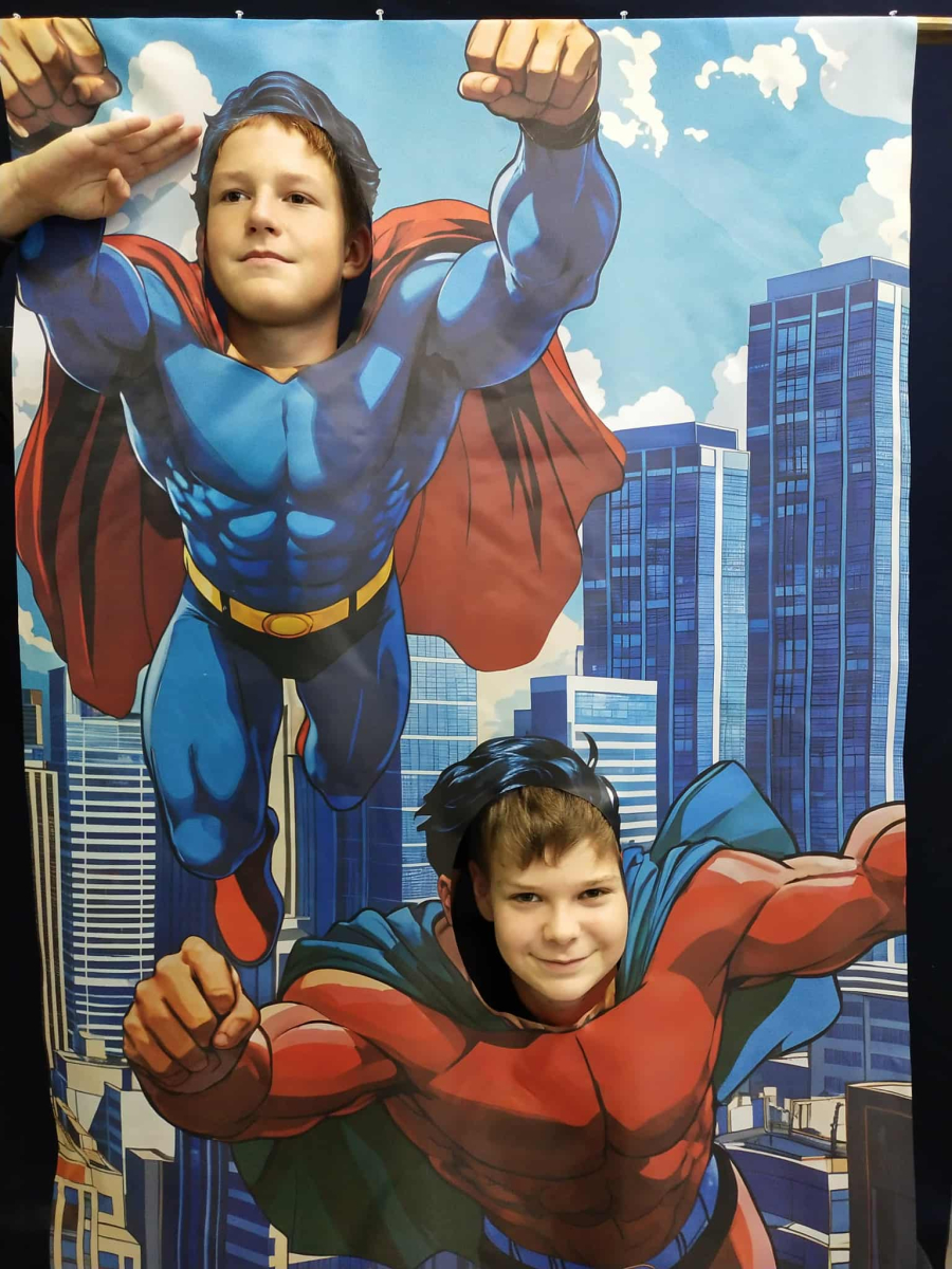 Nie mogło zabraknąć pamiątkowych fotografii! Specjalnie przygotowana ścianka w superbohaterskim stylu cieszyła się ogromnym zainteresowaniem.