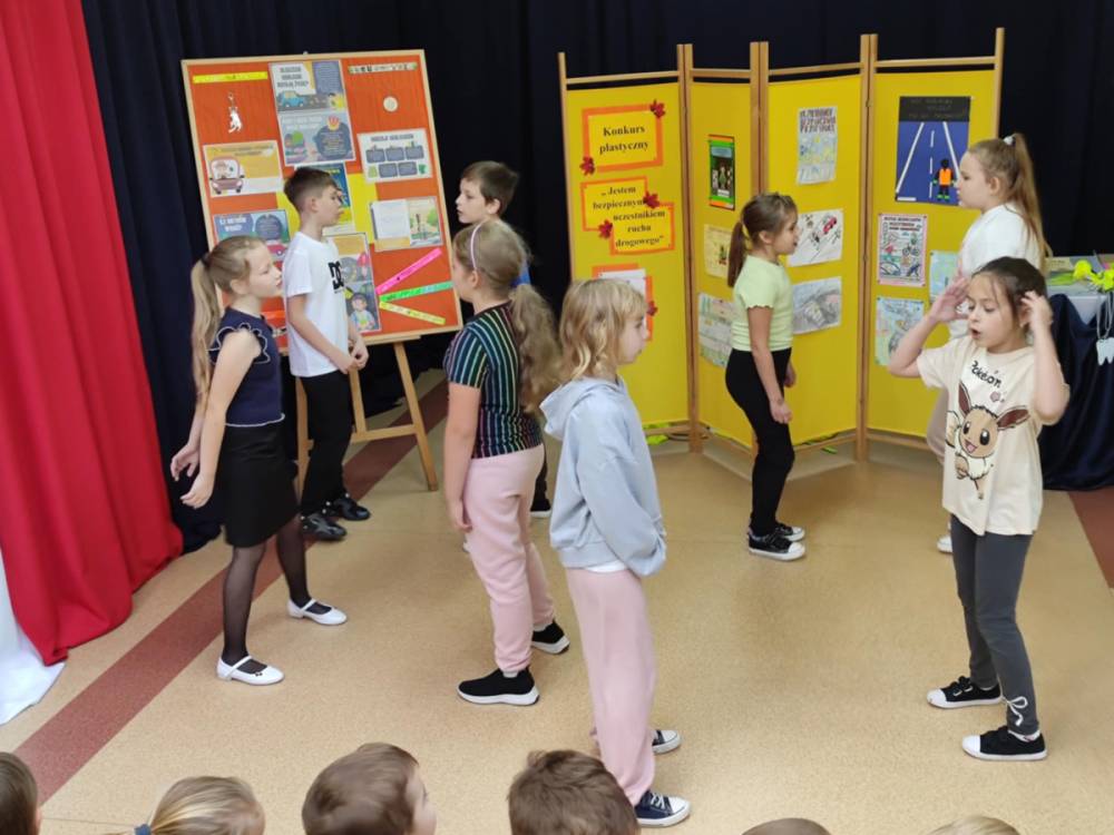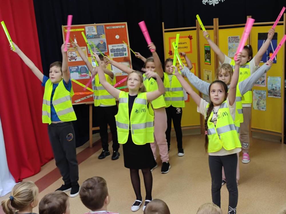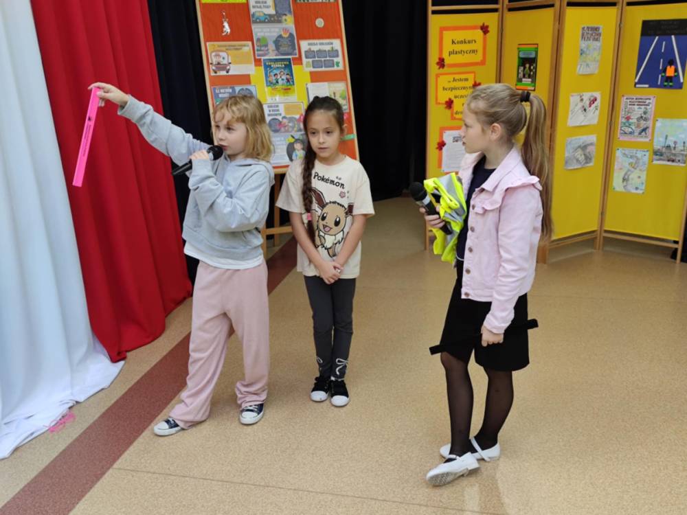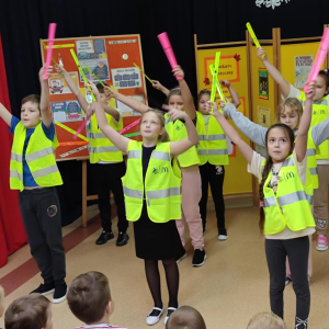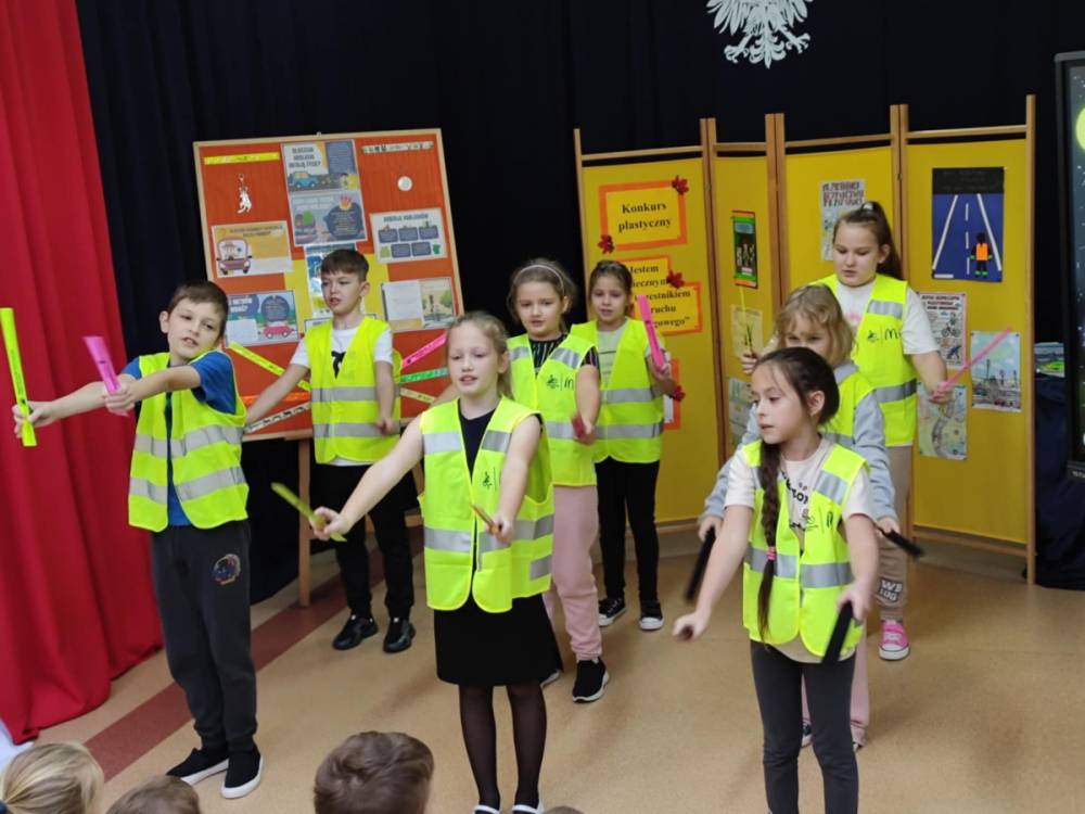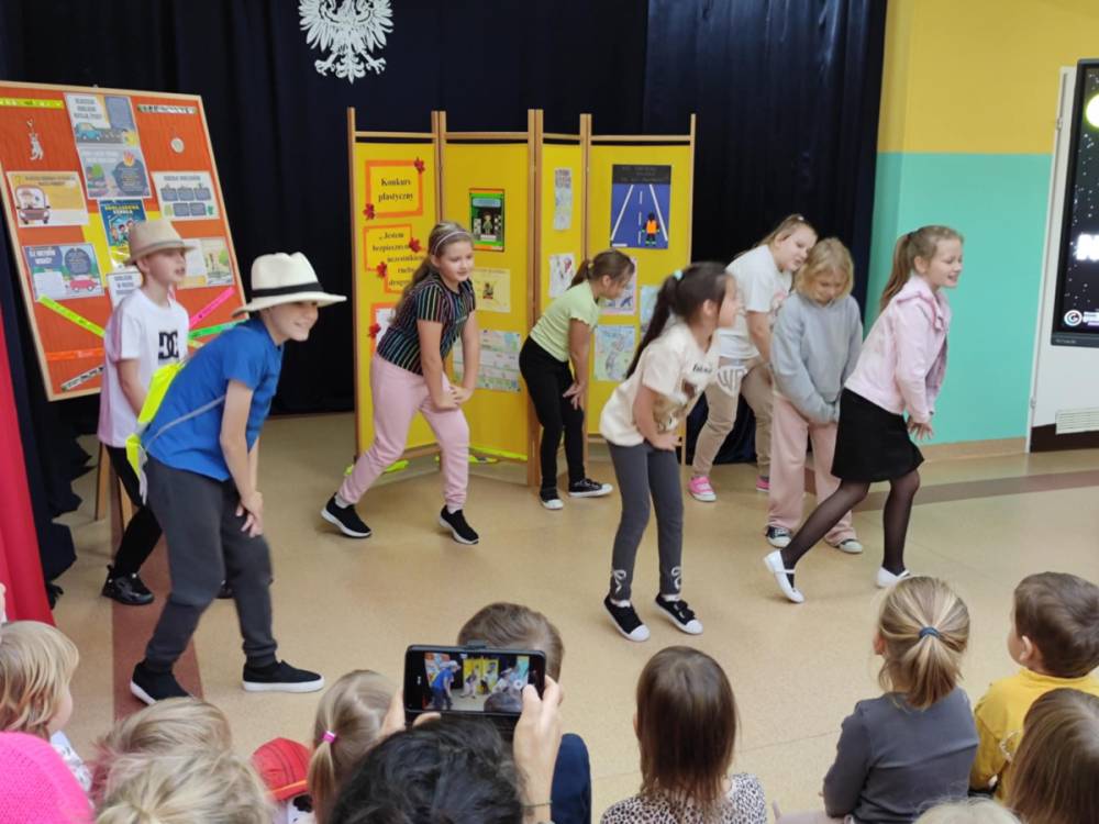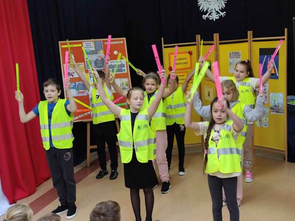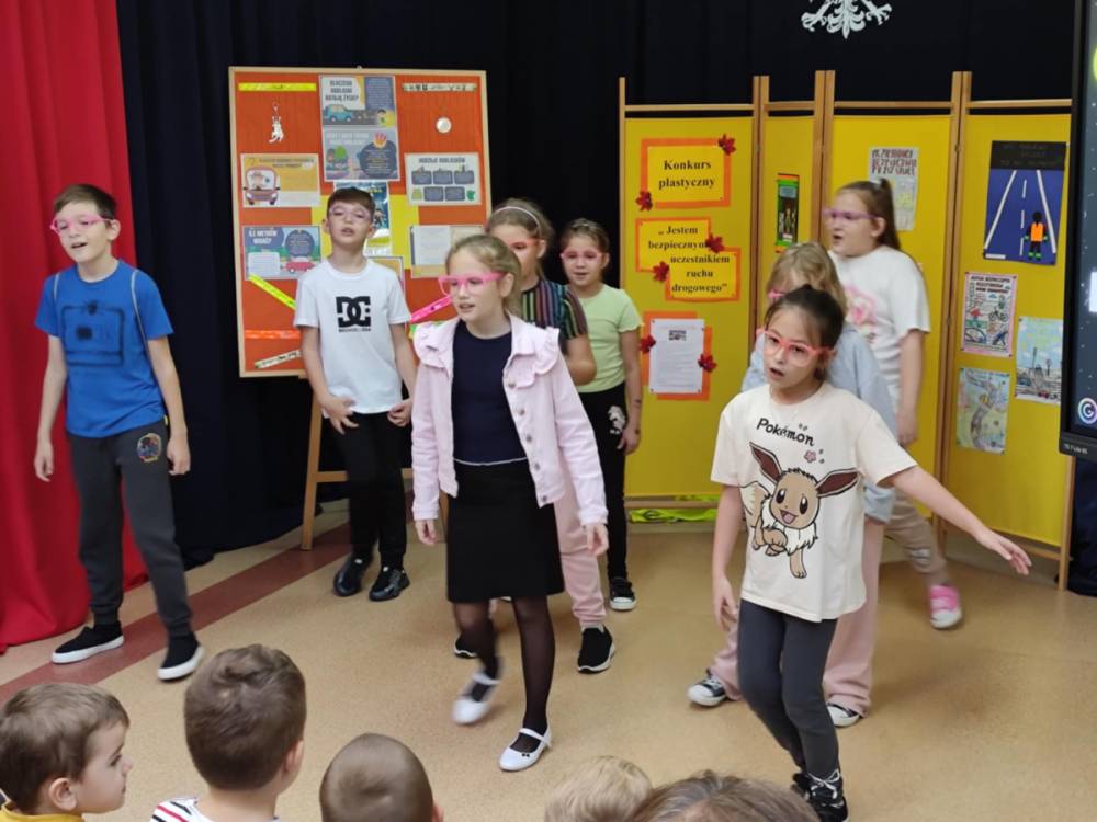 Jednym z najbardziej wyczekiwanych punktów programu był musical przygotowany przez uczniów klasy III. Młodzi artyści w kolorowych, odblaskowych strojach zaprezentowali barwne przedstawienie, w którym – poprzez piosenki, tańce i humorystyczne scenki – pokazali, jak powinno się zachowywać w ruchu drogowym. Było radośnie, pouczająco i bardzo wzruszająco. Publiczność nagrodziła ich występ gromkimi brawami.