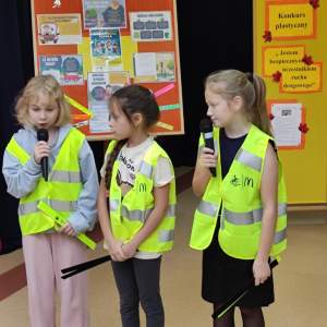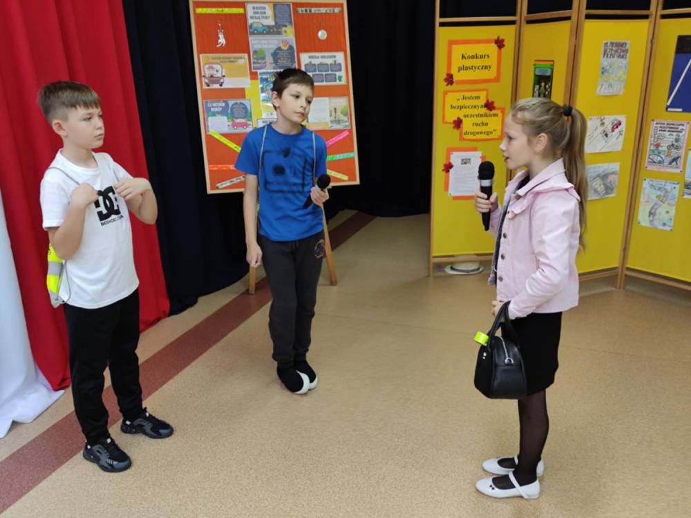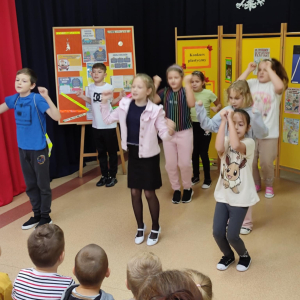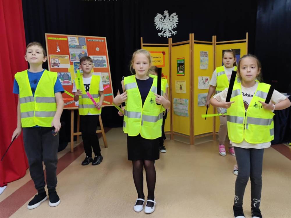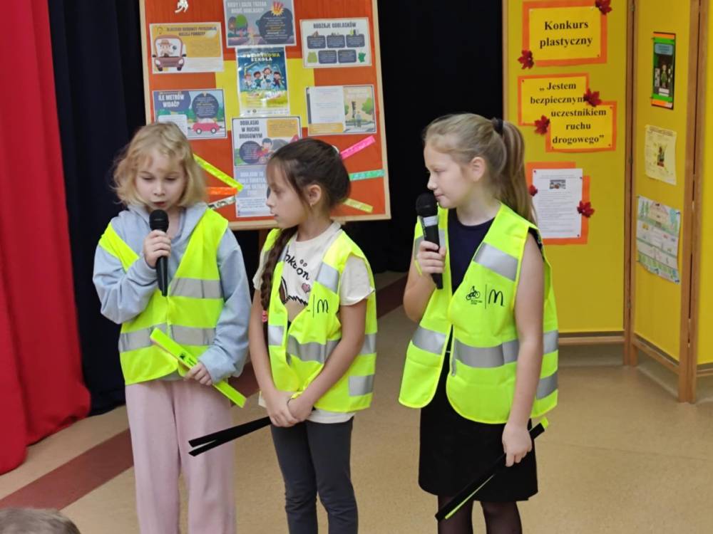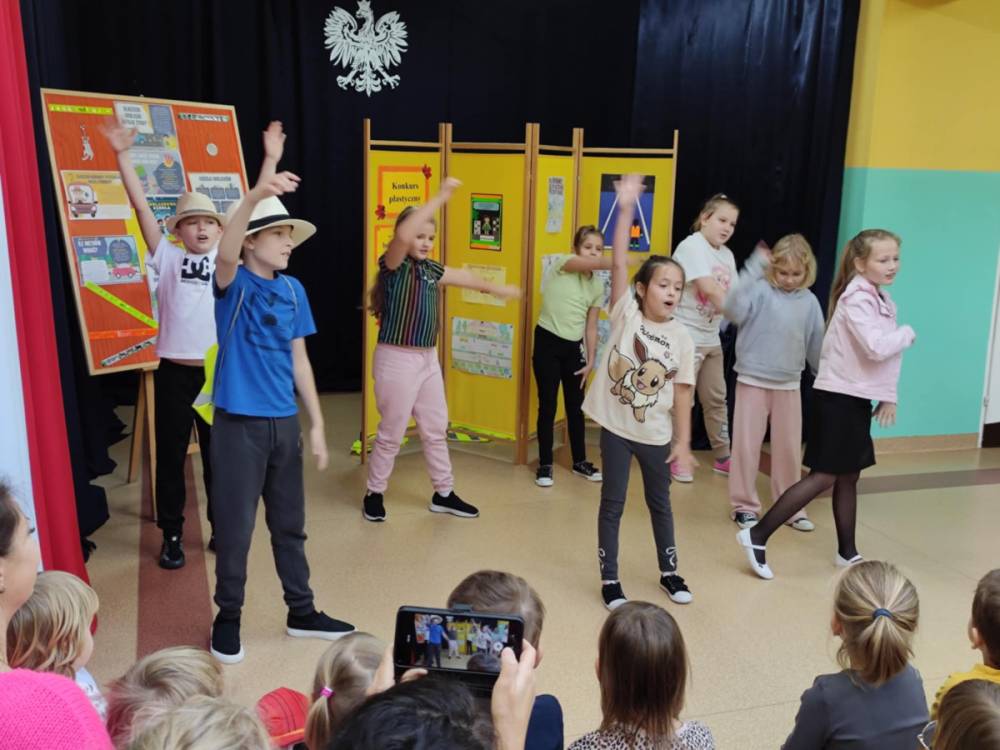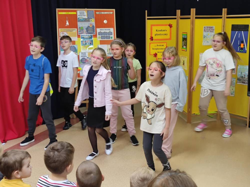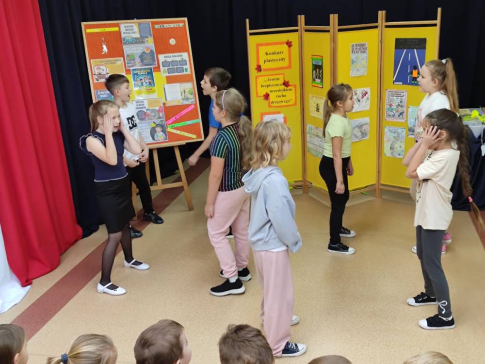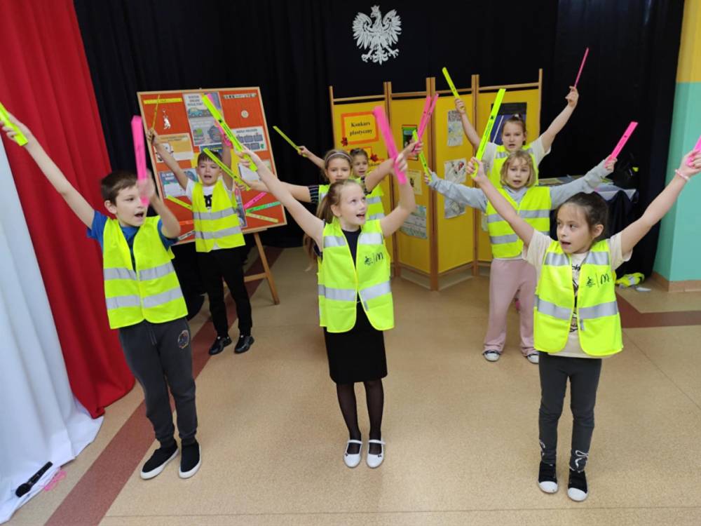 Jednym z najbardziej wyczekiwanych punktów programu był musical przygotowany przez uczniów klasy III. Młodzi artyści w kolorowych, odblaskowych strojach zaprezentowali barwne przedstawienie, w którym – poprzez piosenki, tańce i humorystyczne scenki – pokazali, jak powinno się zachowywać w ruchu drogowym. Było radośnie, pouczająco i bardzo wzruszająco. Publiczność nagrodziła ich występ gromkimi brawami.
