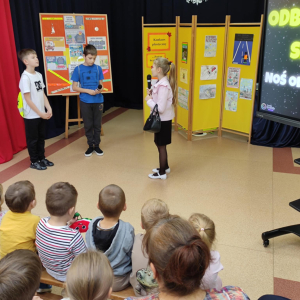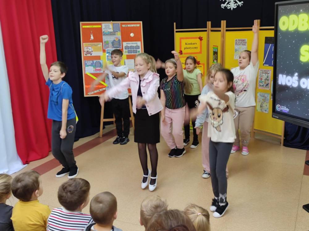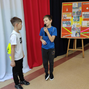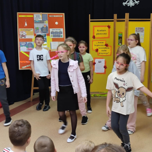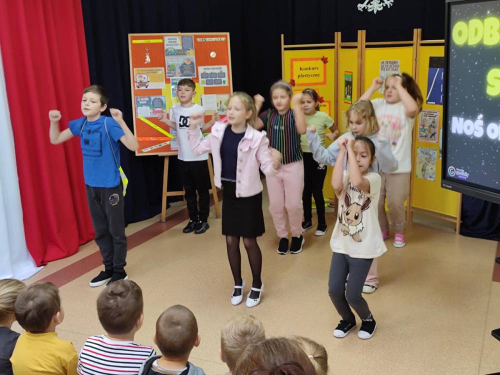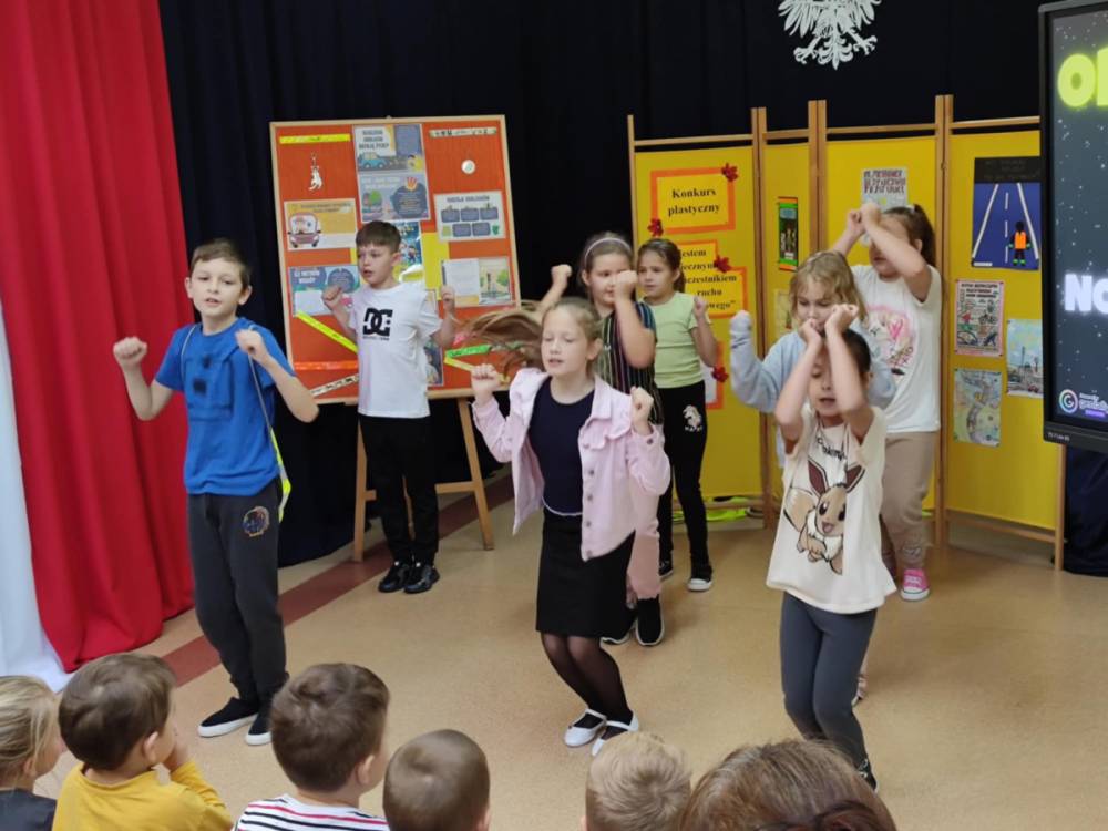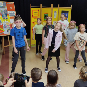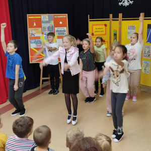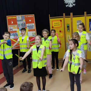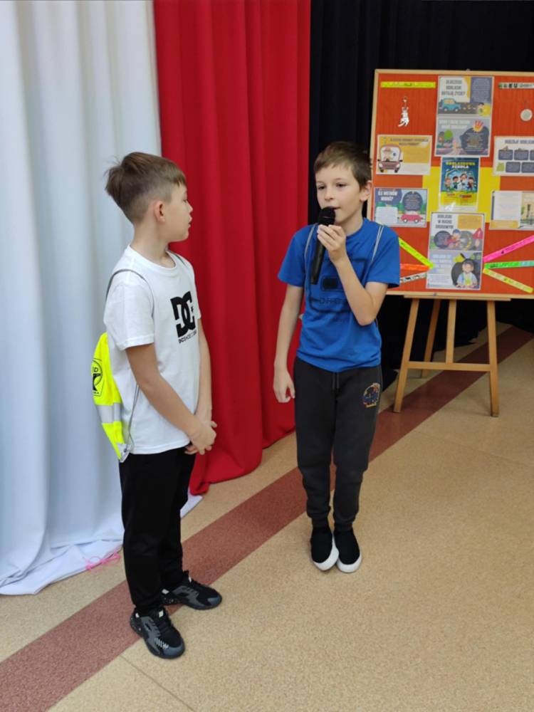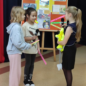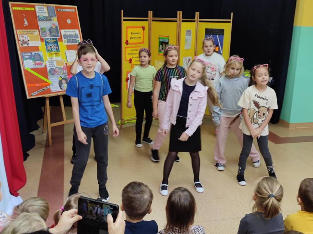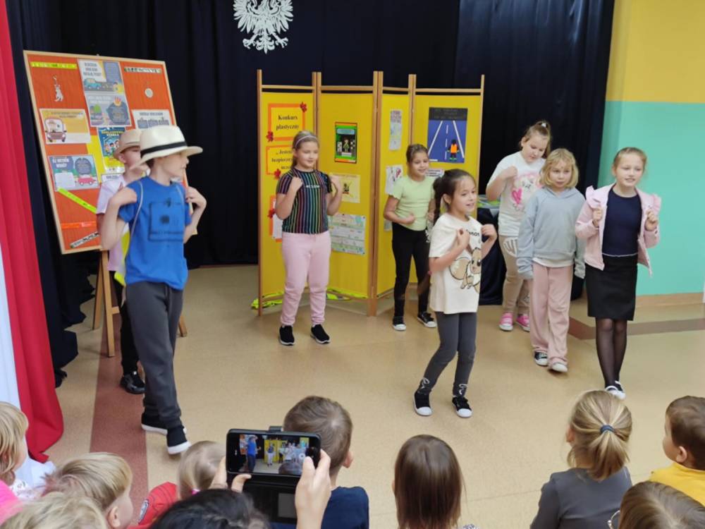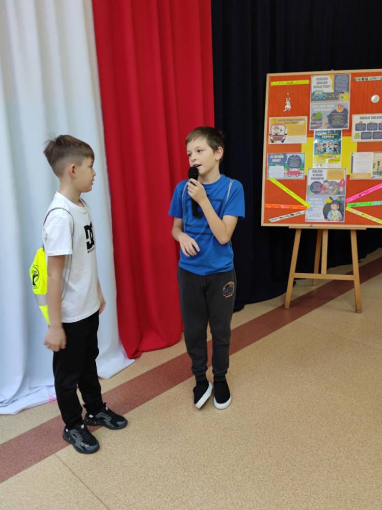 Jednym z najbardziej wyczekiwanych punktów programu był musical przygotowany przez uczniów klasy III. Młodzi artyści w kolorowych, odblaskowych strojach zaprezentowali barwne przedstawienie, w którym – poprzez piosenki, tańce i humorystyczne scenki – pokazali, jak powinno się zachowywać w ruchu drogowym. Było radośnie, pouczająco i bardzo wzruszająco. Publiczność nagrodziła ich występ gromkimi brawami.
