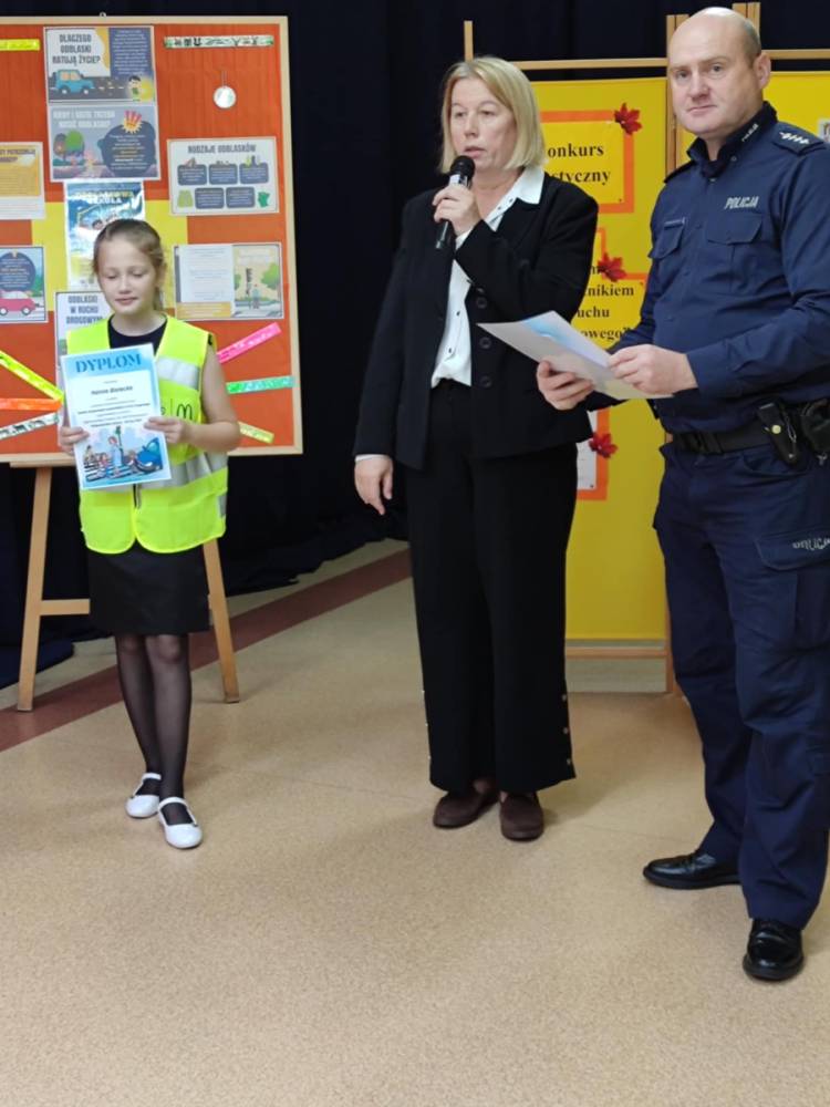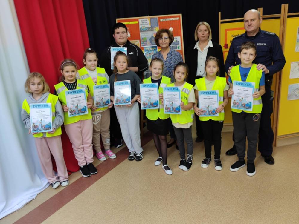 Podczas apelu odbyło się także wręczenie dyplomów laureatom szkolnego konkursu plastycznego „Jestem bezpiecznym uczestnikiem ruchu drogowego”. Uczniowie klas 1–3 wykazali się ogromną kreatywnością – ich prace były pełne kolorów, pomysłów i ważnych przesłań o bezpieczeństwie na drodze. Starsi uczniowie zmierzyli się natomiast w Turnieju Wiedzy o Ruchu Drogowym – emocji było co niemiara!