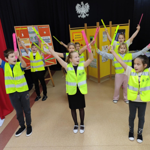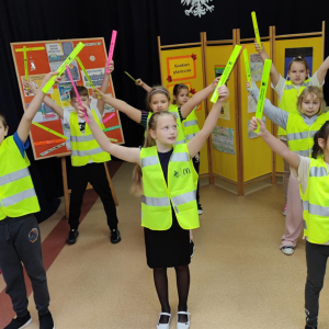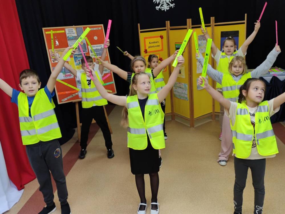 6 listopada 2025 r. w naszej szkole odbył się niezwykły apel w ramach Ogólnopolskiego Konkursu „Odblaskowa Szkoła" 2025.Wydarzenie połączyło całą społeczność szkolną wokół bardzo ważnego tematu — bezpieczeństwa na drodze. Celem apelu było przypomnienie, jak ogromne znaczenie ma noszenie elementów odblaskowych po zmroku, poruszanie się zgodnie z zasadami ruchu drogowego i dbanie o bezpieczeństwo swoje oraz innych uczestników ruchu.