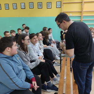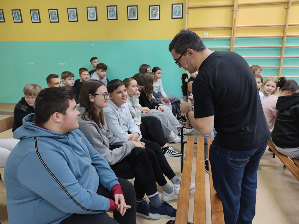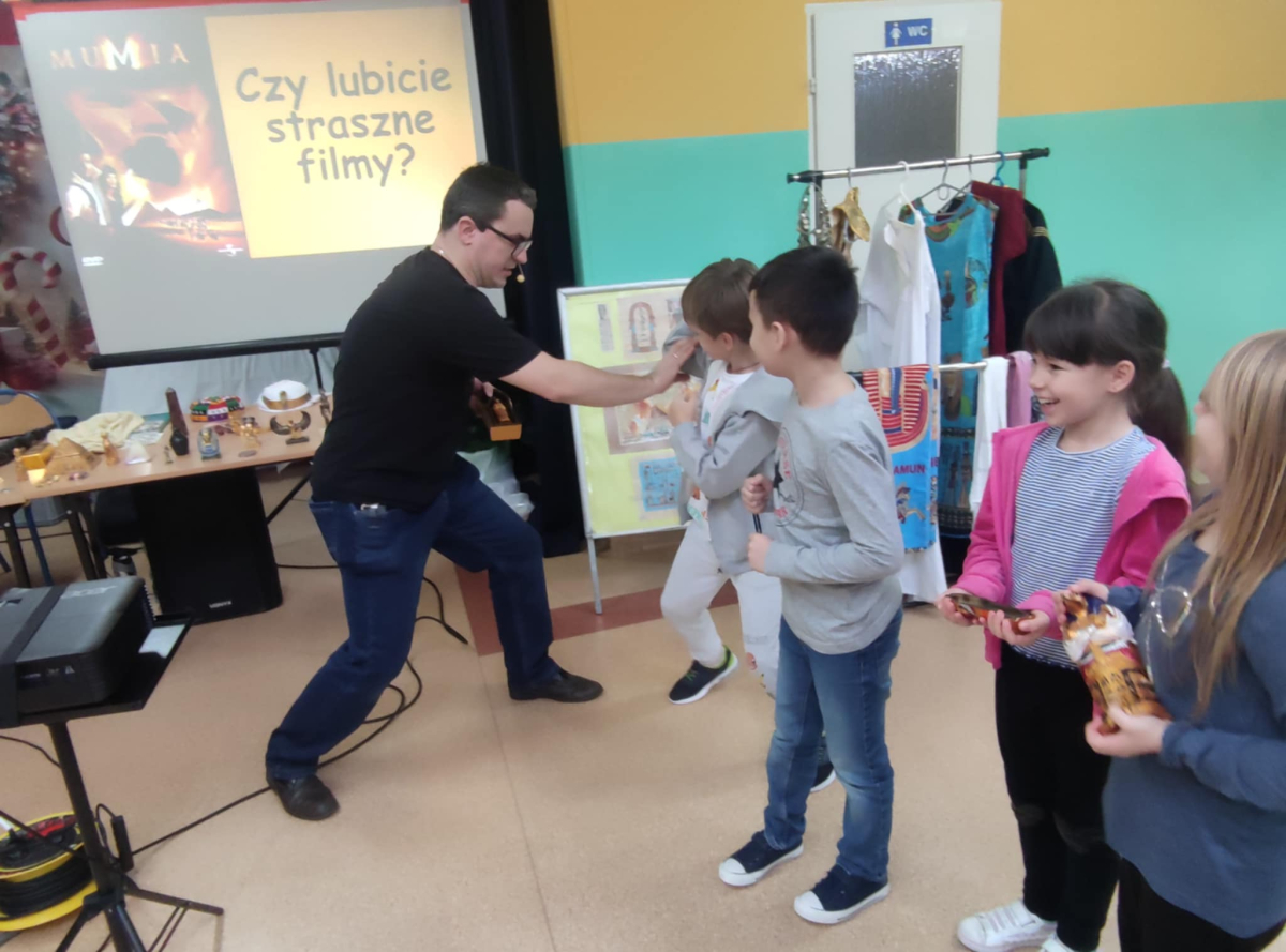 Całe spotkanie było niezwykle inspirujące, pełne humoru, ciekawostek i pięknych zdjęć. Uczniowie długo po zakończeniu rozmawiali o tym, co zobaczyli i usłyszeli. Wiele osób przyznało, że dzięki tej lekcji zapragnęło kiedyś odwiedzić Egipt lub poznać inne kultury świata.To była nietypowa, wartościowa i pełna pasji lekcja, która pokazała, jak wiele można się nauczyć, gdy wiedza przekazywana jest sercem i doświadczeniem. Z całego serca dziękujemy panu Mateuszowi za wizytę i liczymy, że jeszcze kiedyś do nas wróci – być może z opowieściami o kolejnych fascynujących krajach i przygodach!