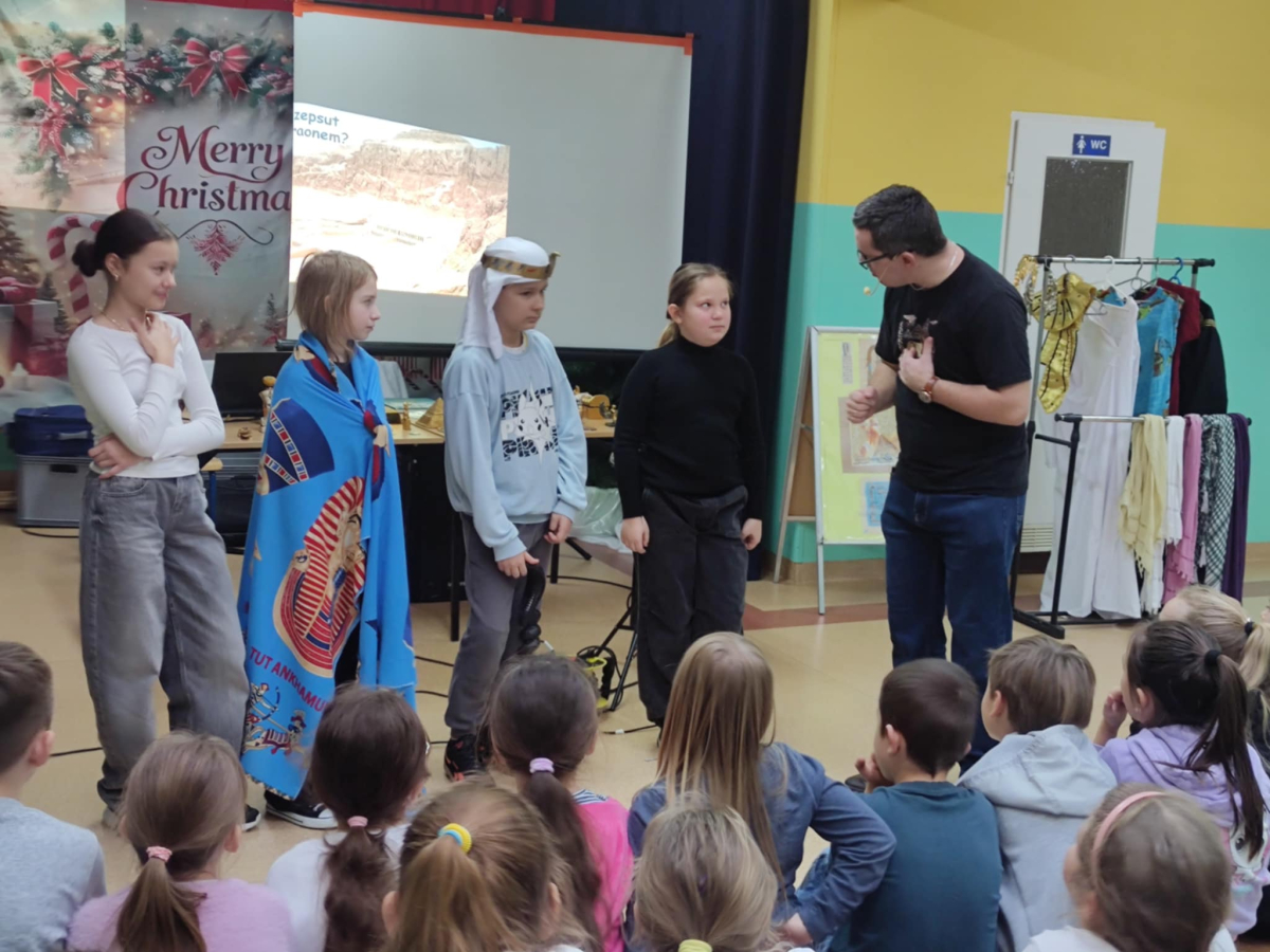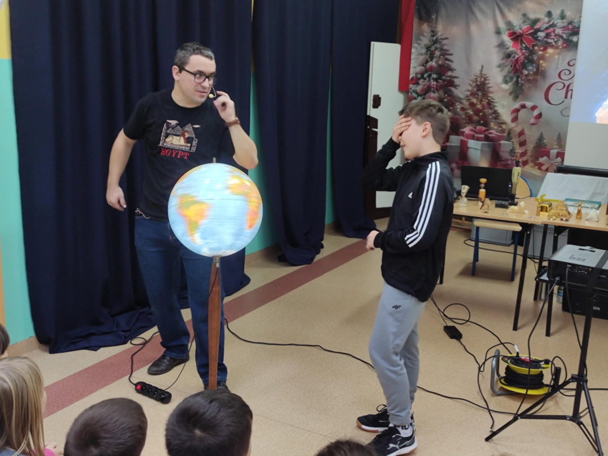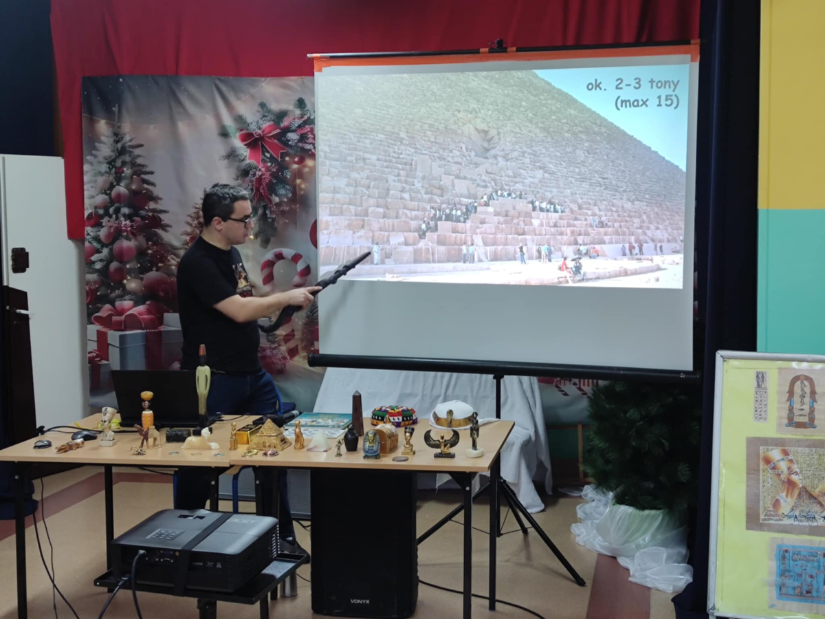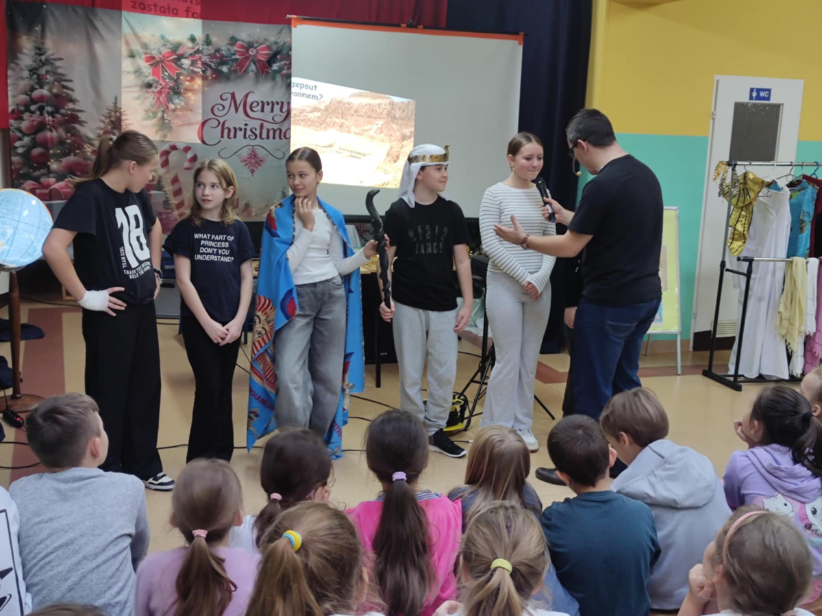 W czwartek 11.12.2025 r. mieliśmy zaszczyt gościć w naszej szkole podróżnika Pana Mateusza Chołodego– człowieka pełnego pasji, energii i niesamowitych historii. Jego lekcja pt. „Egipt – kraina nad wielkim Nilem” okazała się jednym z najbardziej inspirujących wydarzeń tego roku szkolnego! Już od pierwszych minut spotkania czuliśmy, że czeka nas coś wyjątkowego. Pan Mateusz zabrał nas w barwną opowieść o Egipcie, który dla wielu z nas kojarzył się głównie z piramidami i faraonami. Tymczasem dowiedzieliśmy się o wiele więcej!