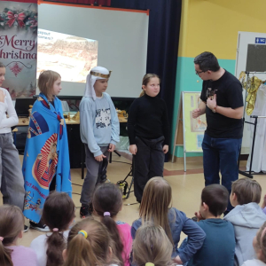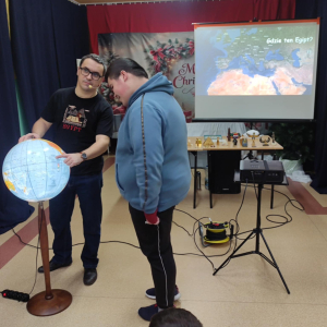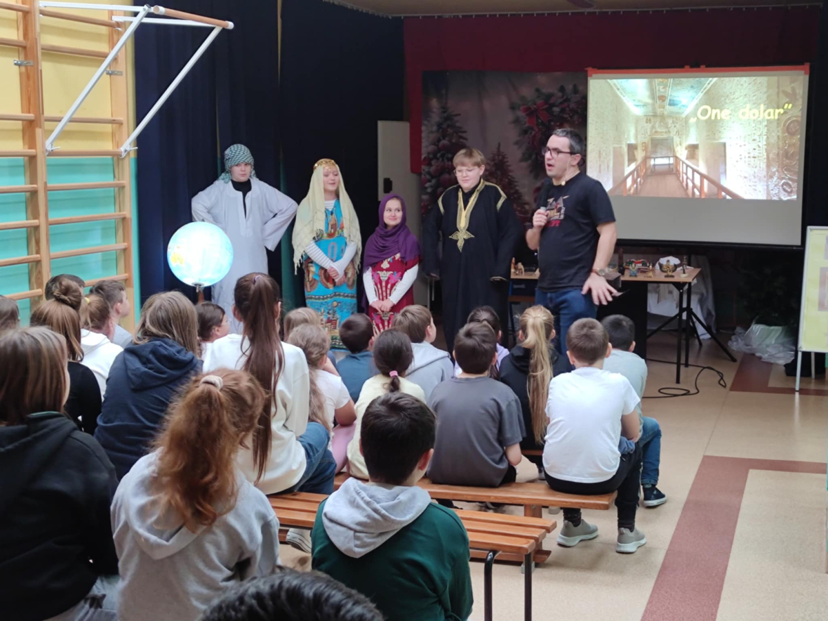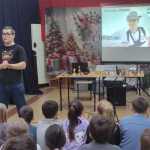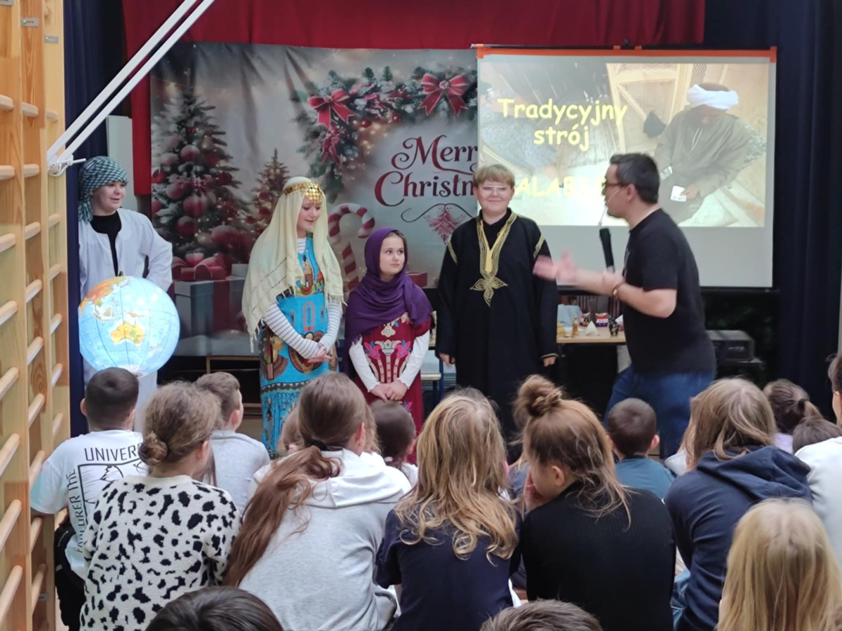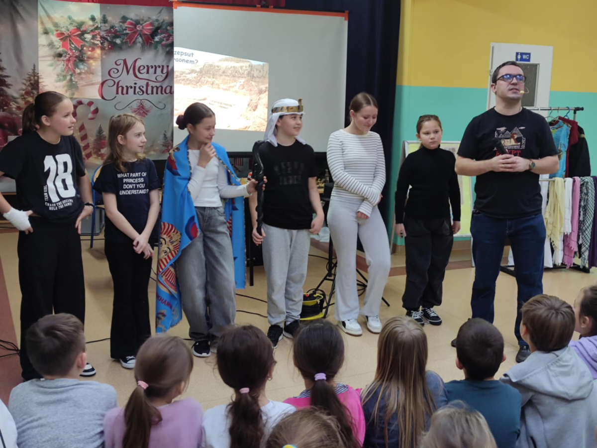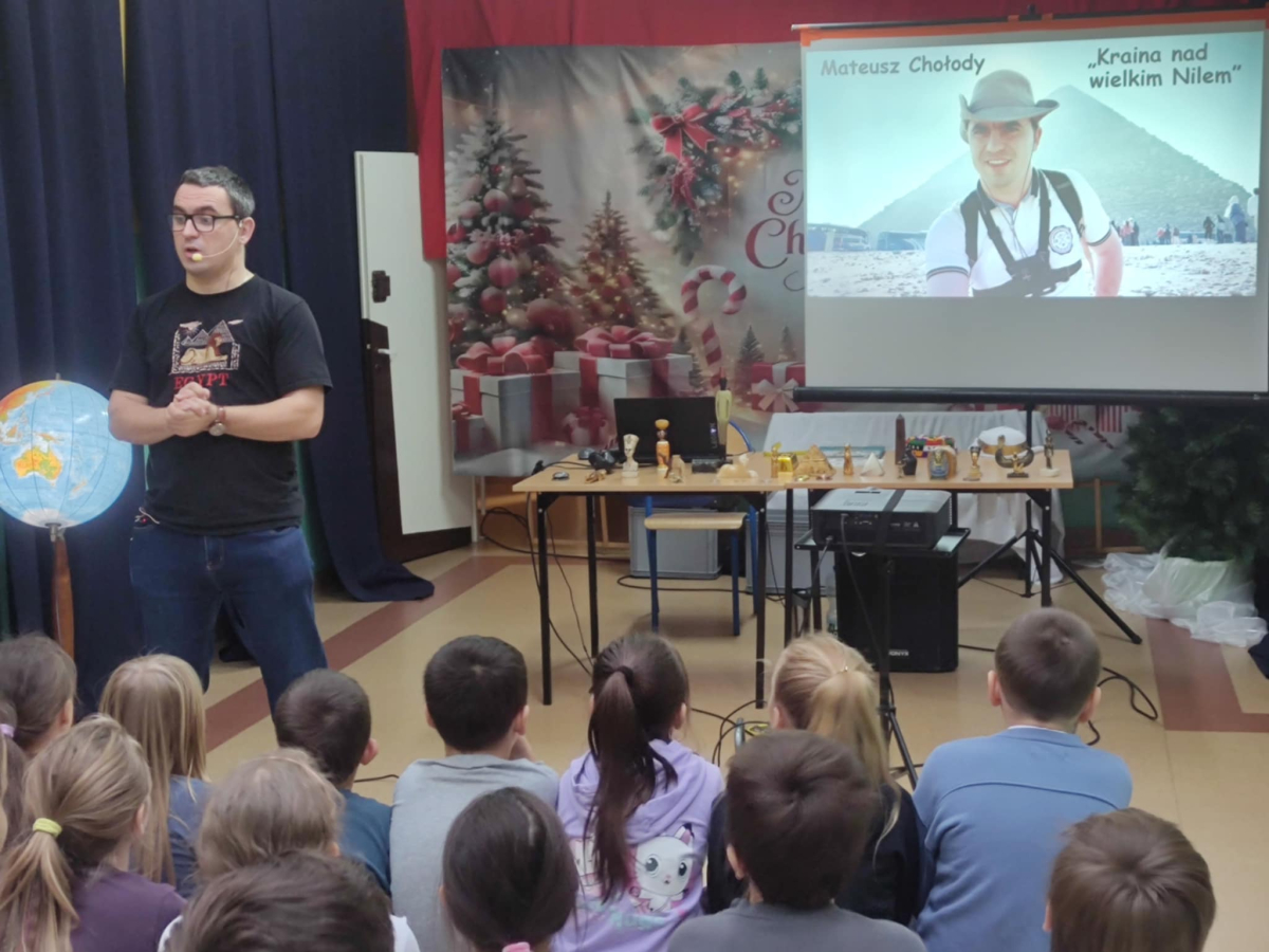 W czwartek 11.12.2025 r. mieliśmy zaszczyt gościć w naszej szkole podróżnika Pana Mateusza Chołodego– człowieka pełnego pasji, energii i niesamowitych historii. Jego lekcja pt. „Egipt – kraina nad wielkim Nilem” okazała się jednym z najbardziej inspirujących wydarzeń tego roku szkolnego! Już od pierwszych minut spotkania czuliśmy, że czeka nas coś wyjątkowego. Pan Mateusz zabrał nas w barwną opowieść o Egipcie, który dla wielu z nas kojarzył się głównie z piramidami i faraonami. Tymczasem dowiedzieliśmy się o wiele więcej!