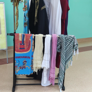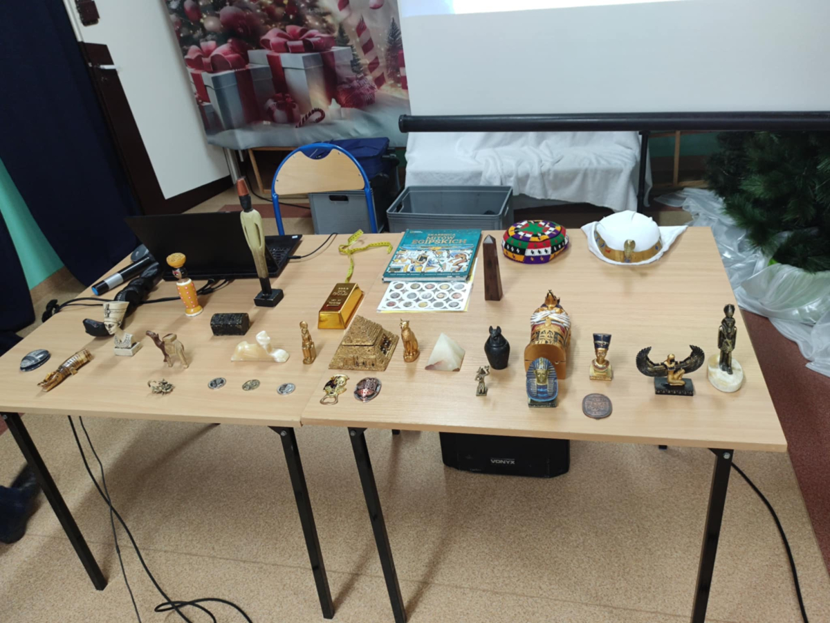 Podróżnik podkreślał także, jak ogromne znaczenie w życiu Egipcjan ma rzeka Nil. To ona „daje życie”, zapewnia wodę, pożywienie, transport i pracę. Bez Nilu Egipt byłby tylko pustynią — słowa te zrobiły na uczniach ogromne wrażenie. Dużą atrakcją dla wszystkich były autentyczne przedmioty przywiezione przez podróżnika. Mogliśmy zobaczyć narzędzia, ozdoby, przedmioty codziennego użytku, a nawet małe pamiątki, które Egipcjanie wykonują ręcznie z naturalnych materiałów. Dotknięcie tych przedmiotów sprawiło, że Egipt stał się dla nas bardziej „prawdziwy”, namacalny i bliższy.
