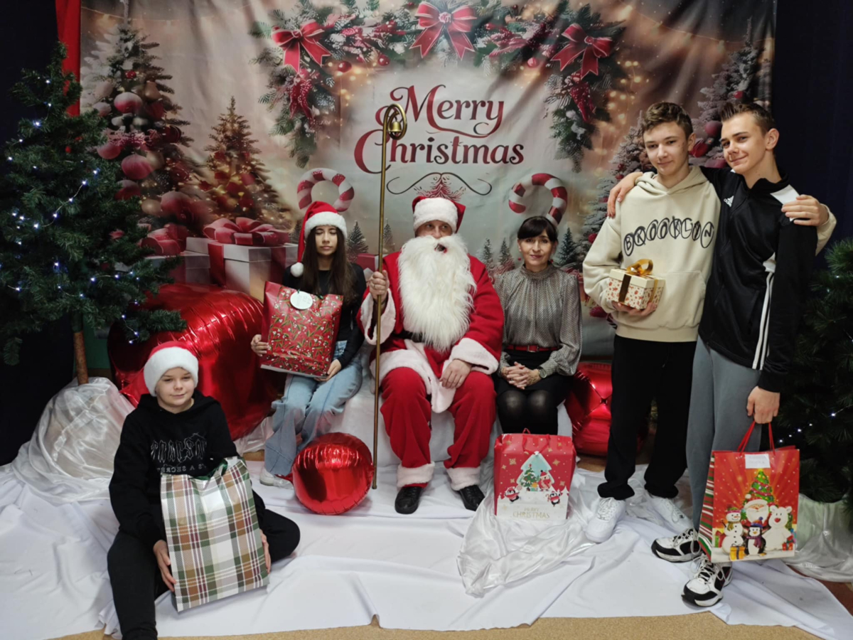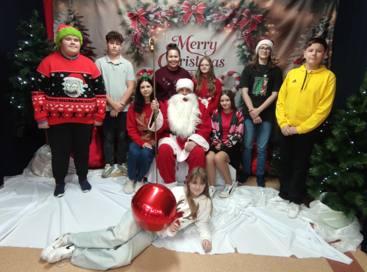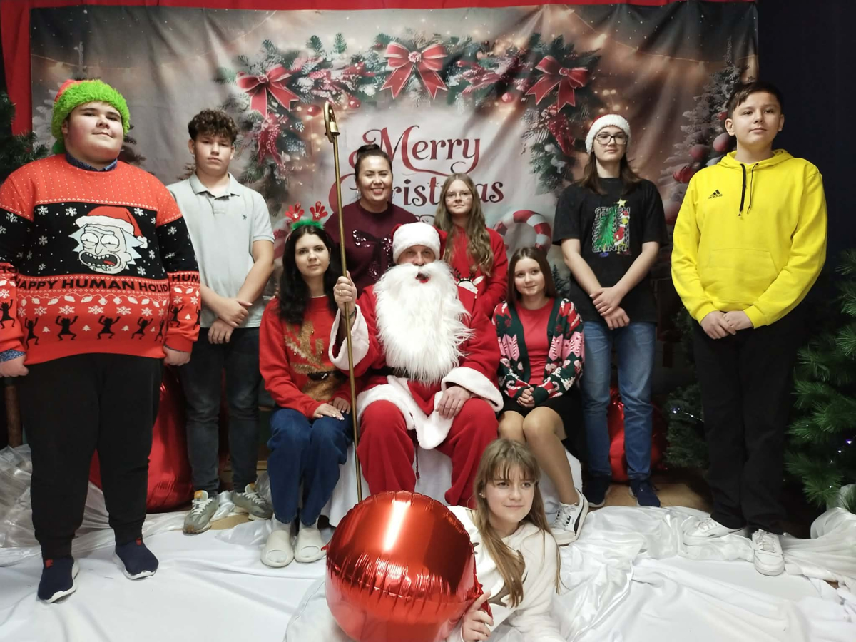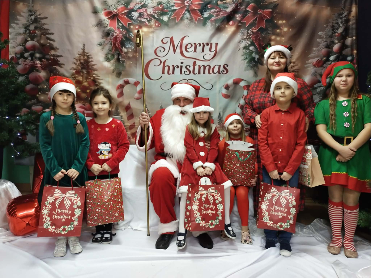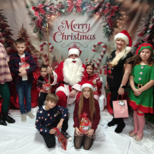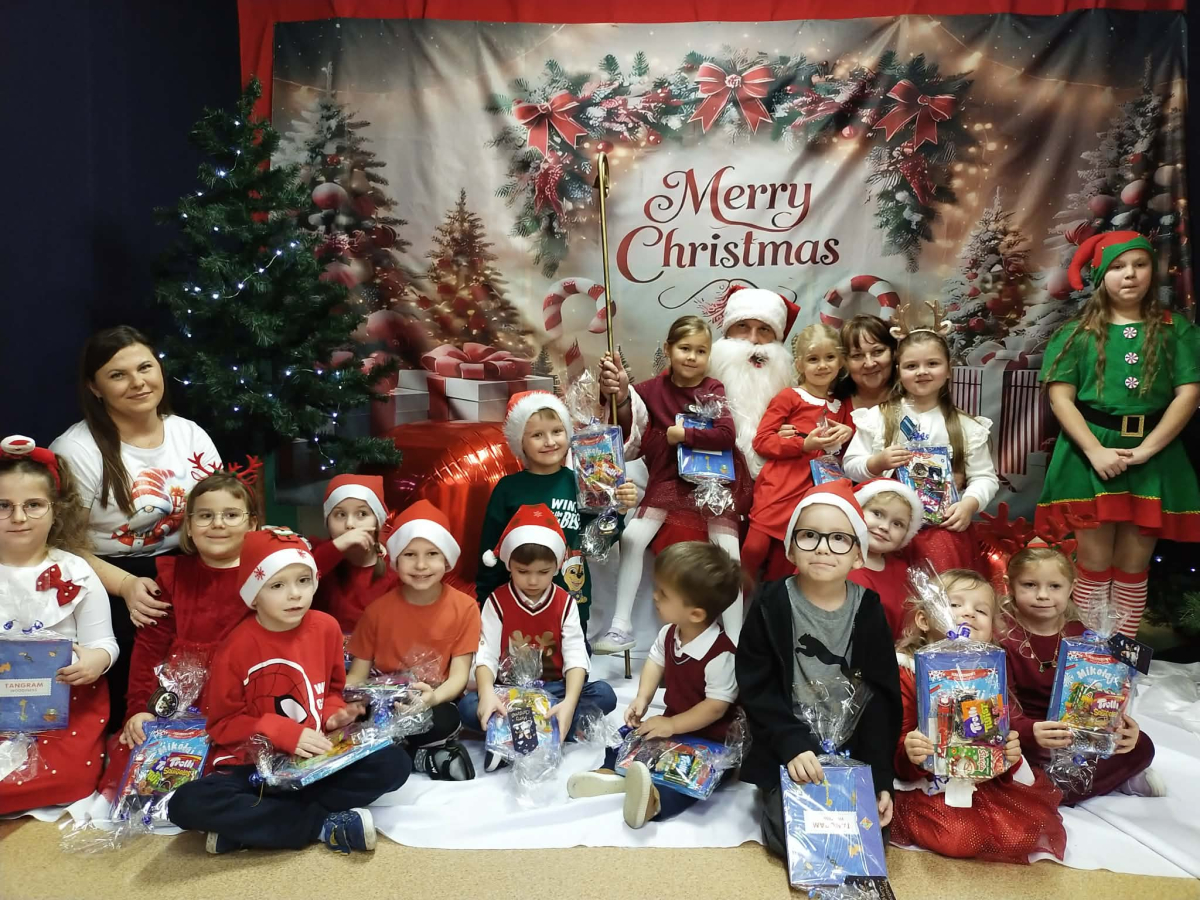 Po występie odbyła się sesja fotograficzna przy pięknej dekoracji, która zachwycała każdego – błyszczące bombki, świecące lampki, zimowe akcenty i kolorowe ozdoby stworzyły prawdziwą fotograficzną scenę. Dzieci chętnie pozowały z Mikołajem, przyjaciółmi i wychowawcami, tworząc wspomnienia, do których na pewno będziemy wracać z wielkim uśmiechem. Ten dzień był pełen uśmiechu, zabawy, świątecznych dźwięków i niezwykłej życzliwości