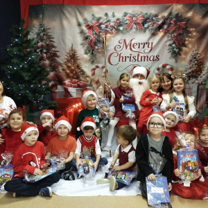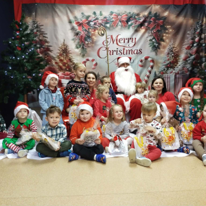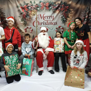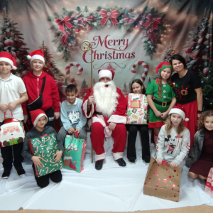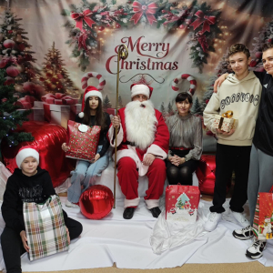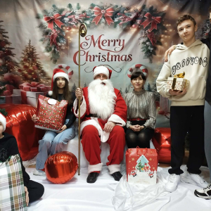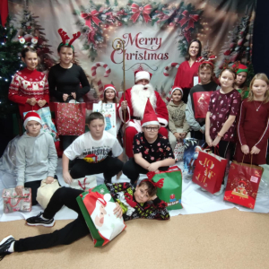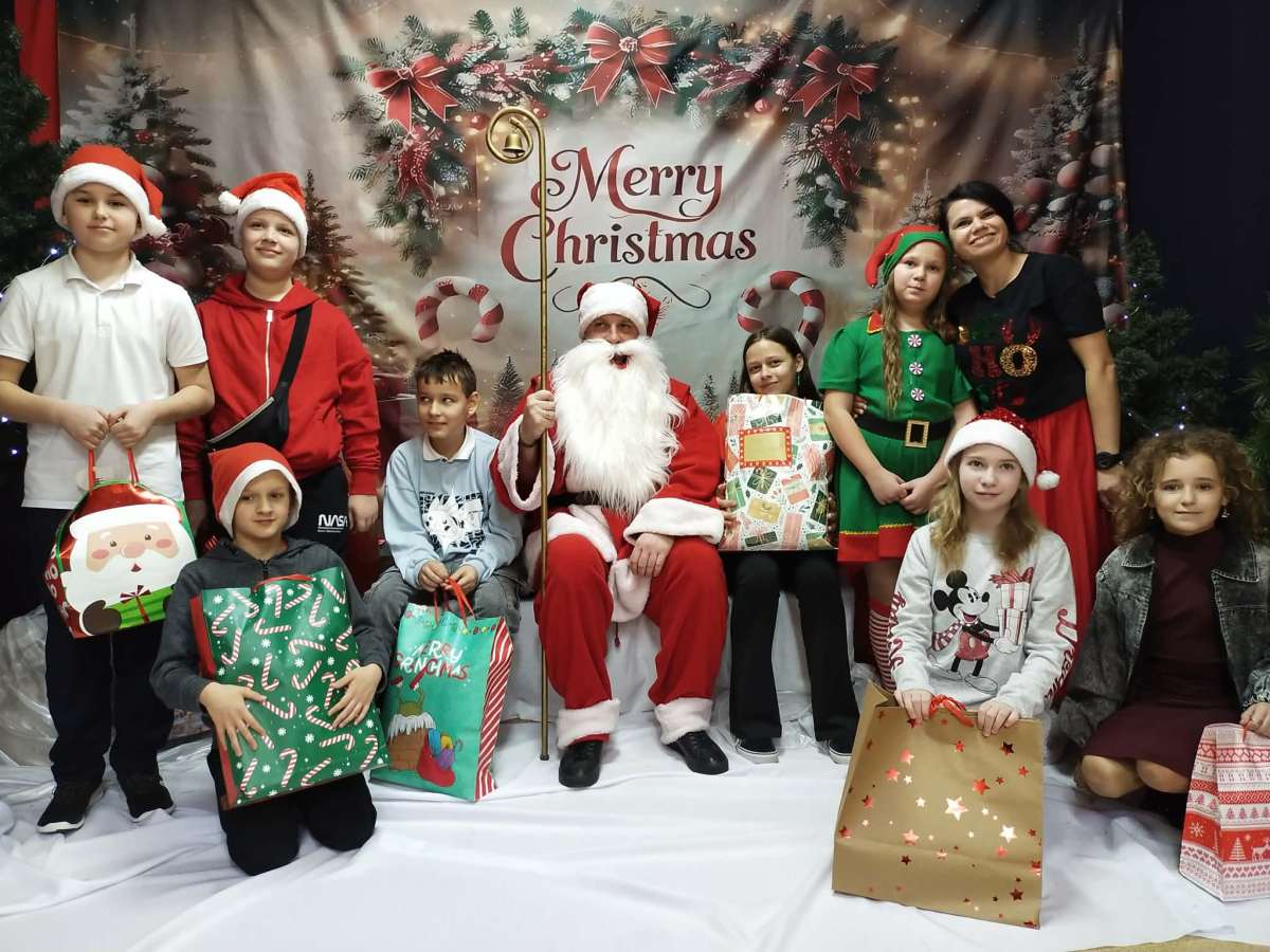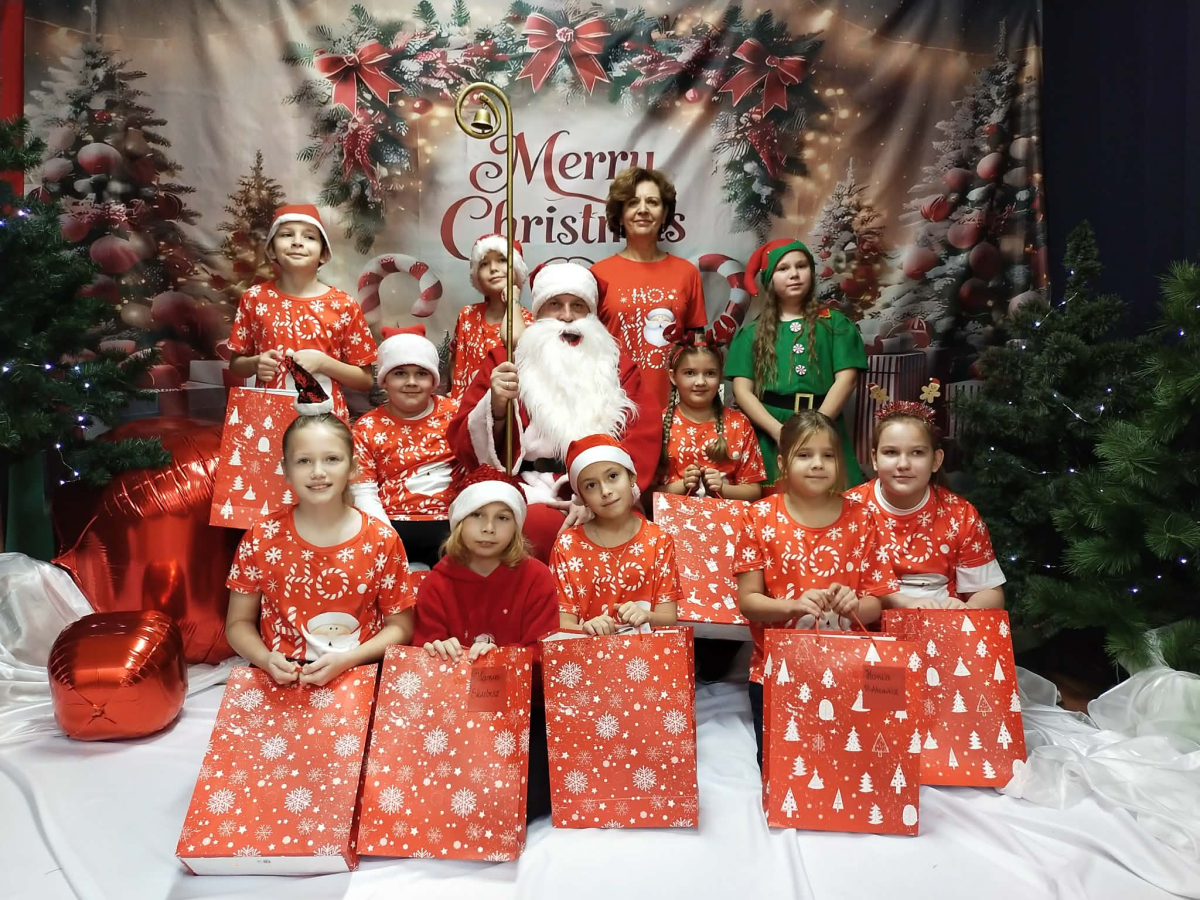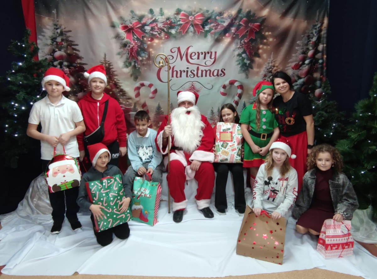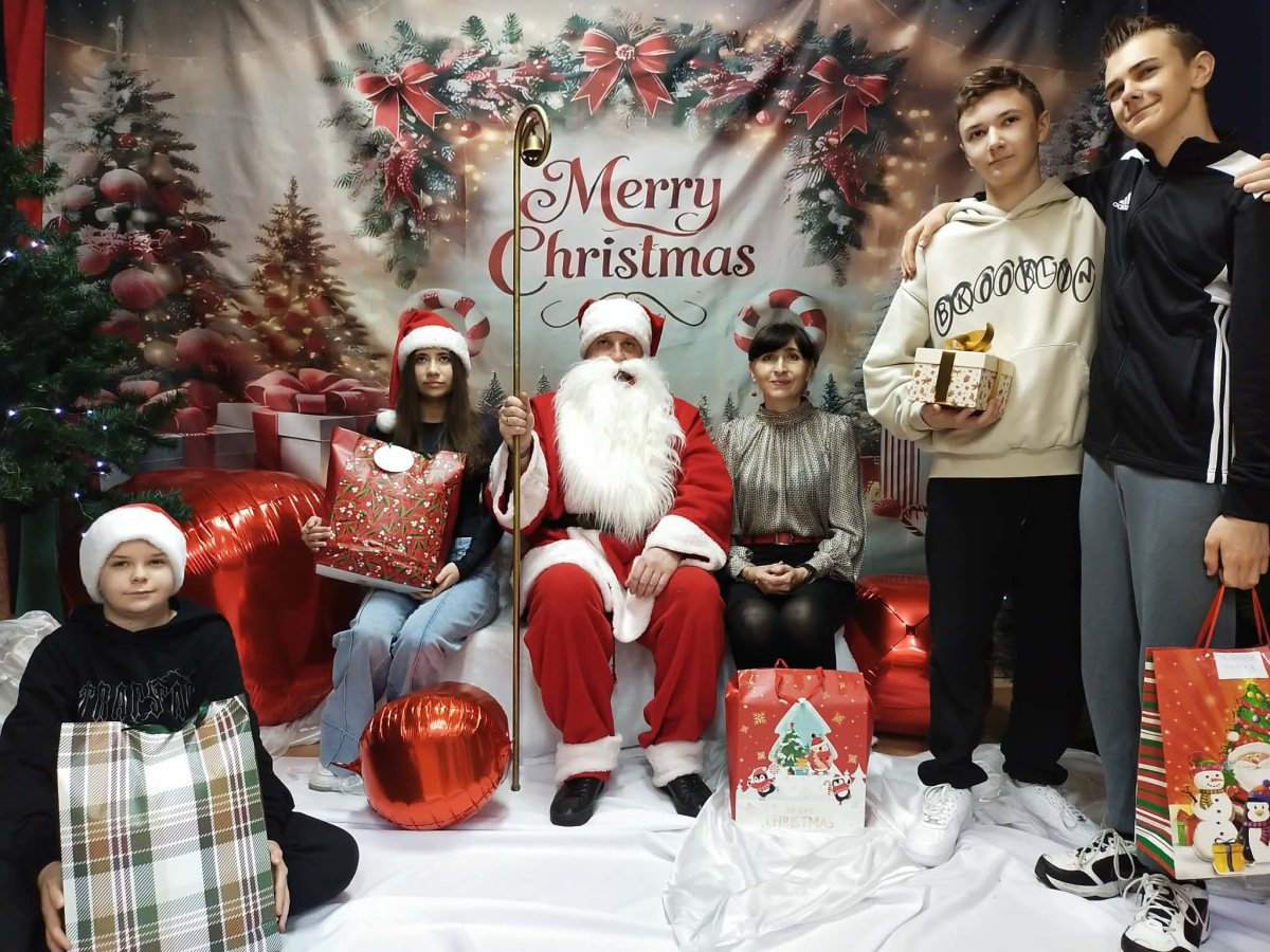 Po występie odbyła się sesja fotograficzna przy pięknej dekoracji, która zachwycała każdego – błyszczące bombki, świecące lampki, zimowe akcenty i kolorowe ozdoby stworzyły prawdziwą fotograficzną scenę. Dzieci chętnie pozowały z Mikołajem, przyjaciółmi i wychowawcami, tworząc wspomnienia, do których na pewno będziemy wracać z wielkim uśmiechem. Ten dzień był pełen uśmiechu, zabawy, świątecznych dźwięków i niezwykłej życzliwości