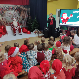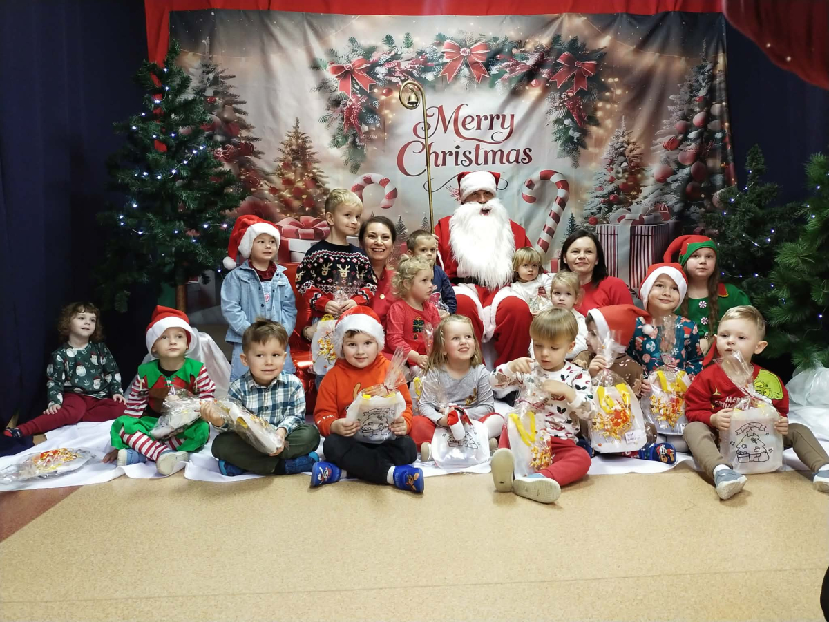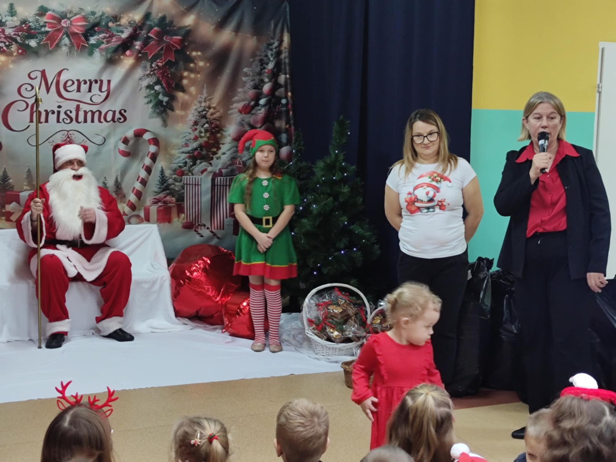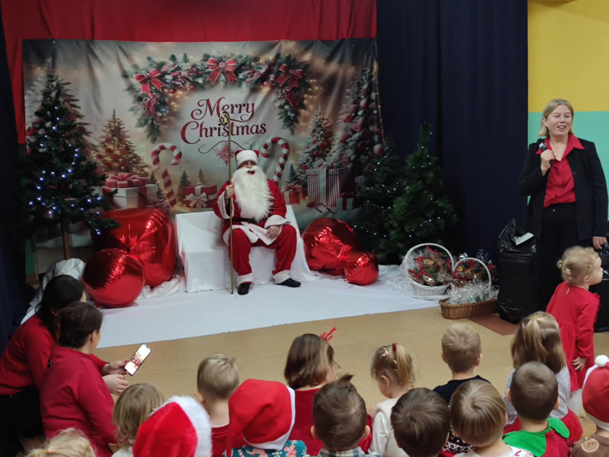 Najbardziej wyczekiwany moment nastąpił, kiedy pojawiał się św. Mikołaj! Dzieci powitały go z ogromnym entuzjazmem, radością i głośnymi okrzykami zachwytu!