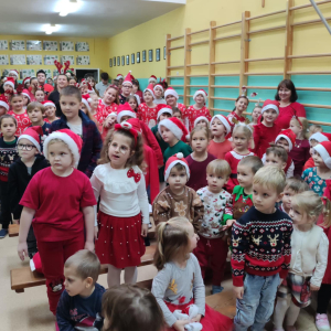 Cała społeczność szkolna – uczniowie, nauczyciele i rodzice – przyszła pięknie ubrana w świąteczne elementy, które sprawiły, że nasza szkoła wyglądała jak prawdziwa, bajkowa kraina.