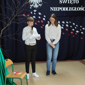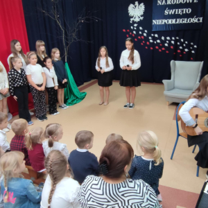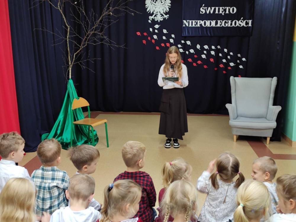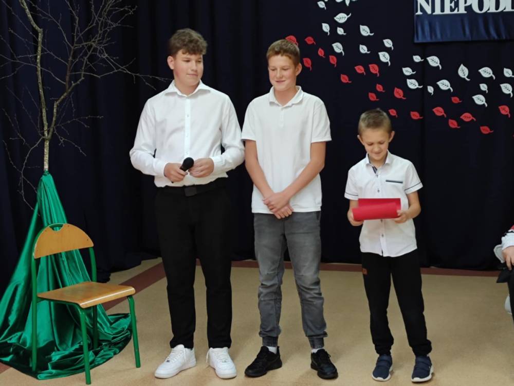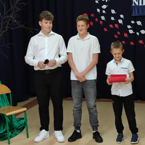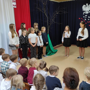 Dnia 12 listopada 2025, cała społeczność naszej szkoły z dumą i wzruszeniem uczciła 107 rocznicę odzyskania przez Polskę niepodległości. Uroczystość rozpoczęła się od wspólnego odśpiewania Mazurka Dąbrowskiego. W trakcie występu przygotowanego przez uczniów klas II–VIII rozbrzmiały słowa i melodie pełne miłości do Ojczyzny. Występ młodzieży w piękny sposób przypomniał nam o sile jedności, odwadze i poświęceniu Polaków, którzy przez lata walczyli o wolność naszej Ojczyzny. Każdy dźwięk i każde słowo były wyrazem wdzięczności i szacunku wobec tych, którzy oddali życie za Polskę. Była to chwila pełna refleksji, dumy i patriotycznego wzruszenia. Niech ten dzień przypomina nam, że wolność nie jest dana raz na zawsze – trzeba o nią dbać z miłością i odpowiedzialnością każdego dnia.