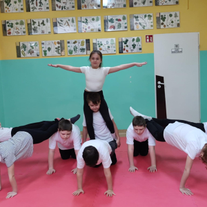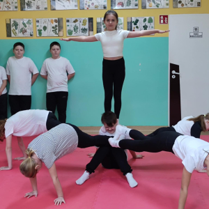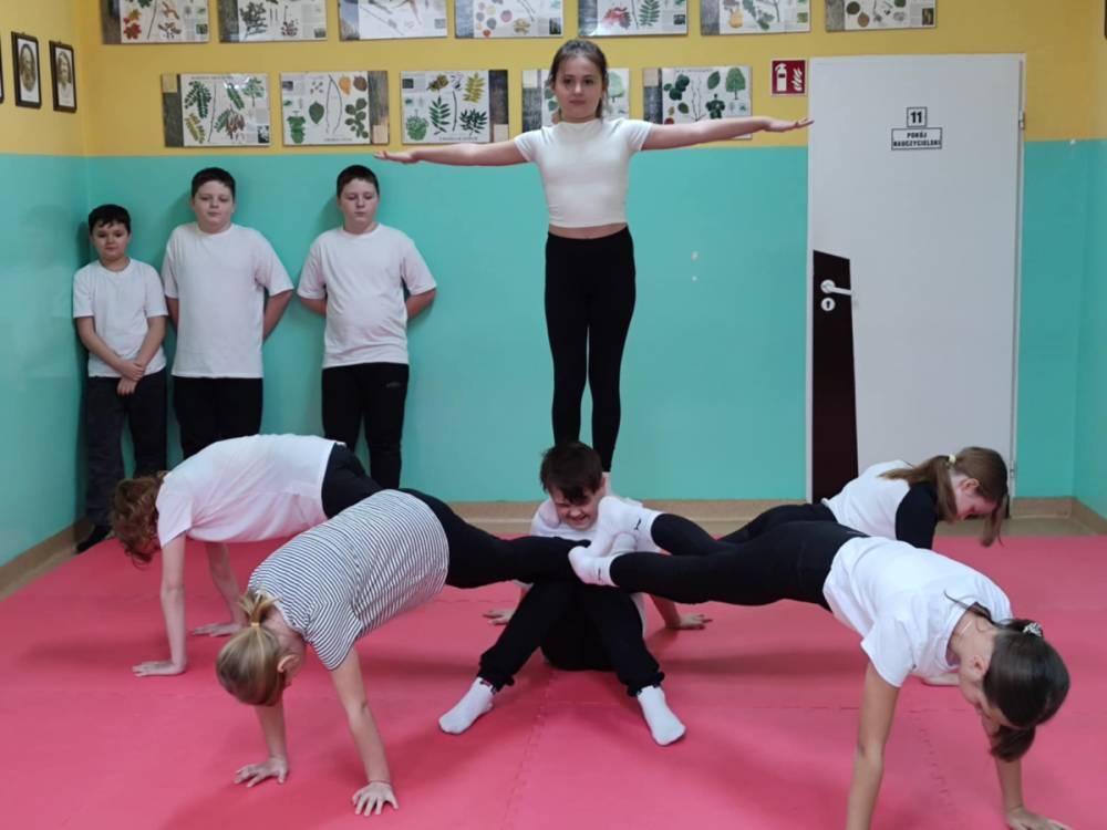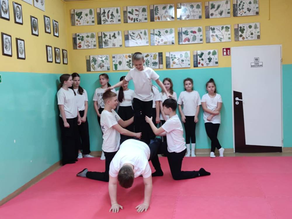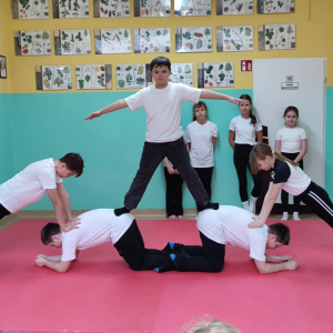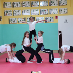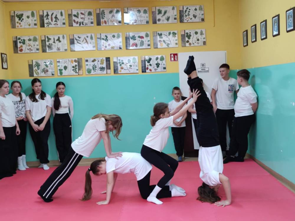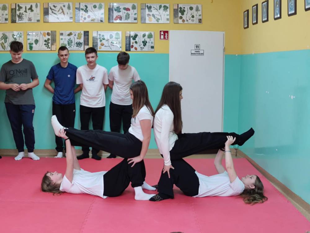 12.02.2026 r. szkolny korytarz zamienił się w prawdziwą arenę sportowych emocji! Organizatorem wydarzenia był nauczyciel wychowania fizycznego, który z ogromnym zaangażowaniem przygotował całe przedsięwzięcie. W pokazach wzięły udział wszystkie klasy, a każda z nich zaprezentowała wyjątkową piramidę gimnastyczną. Były układy niskie i wysokie, efektowne wejścia, trudne elementy równoważne oraz perfekcyjna współpraca zespołowa.