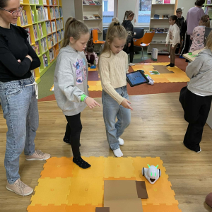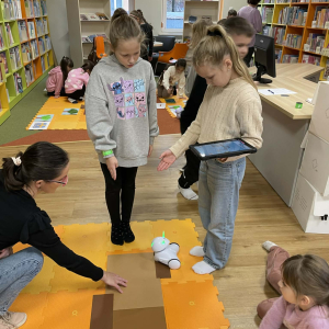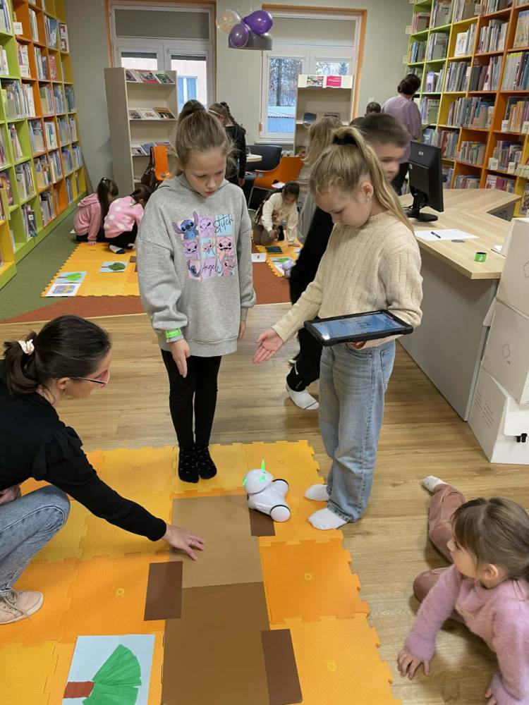 Po zakończonej wizycie w banku uczniowie udali się do Biblioteki Pedagogicznej, gdzie czekało na nich kolejne fascynujące doświadczenie — zajęcia z robotyki!