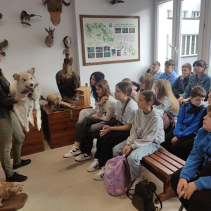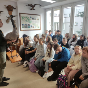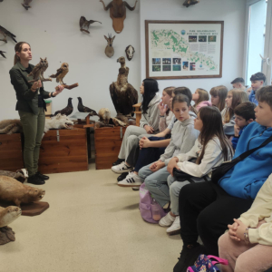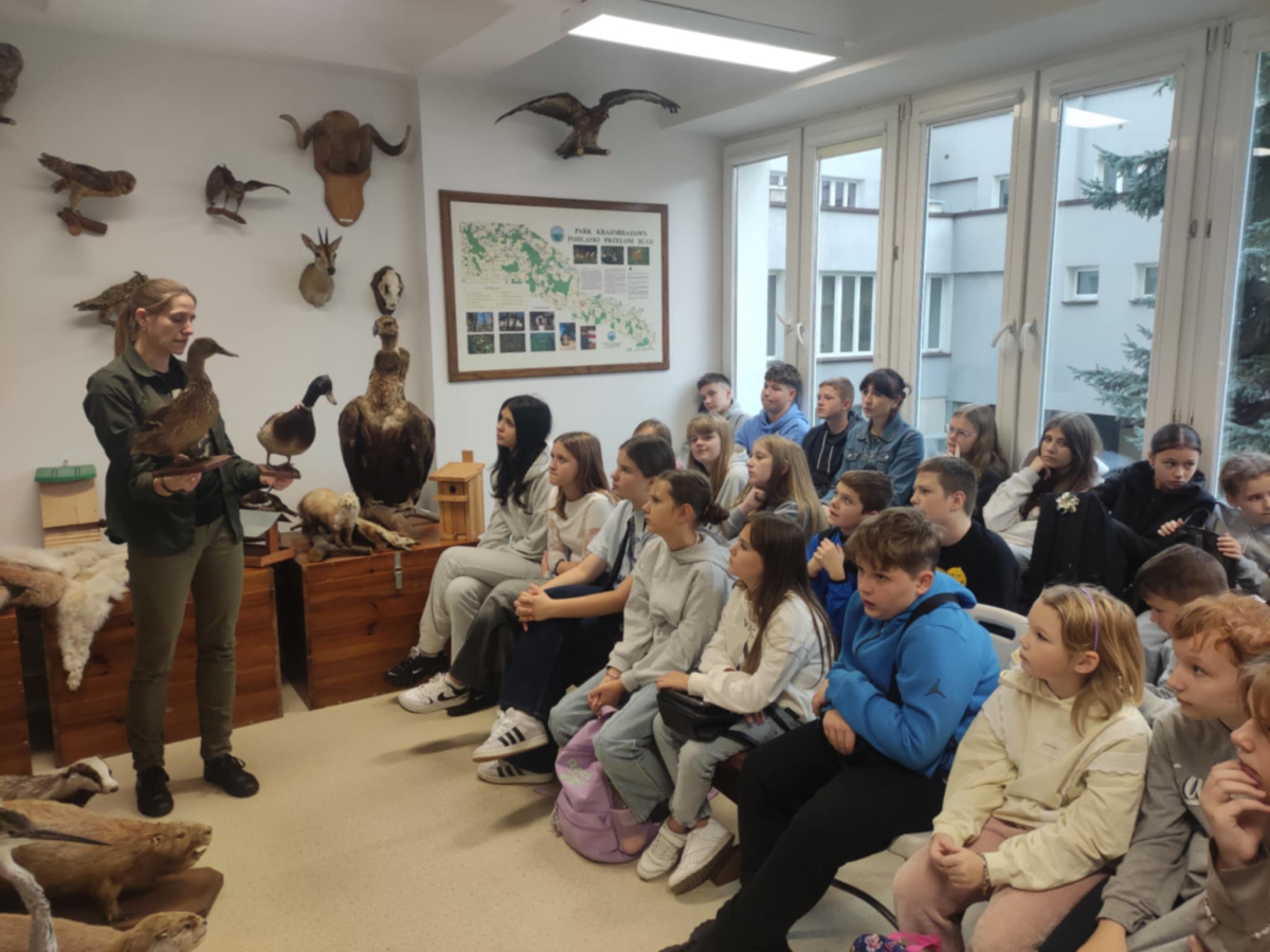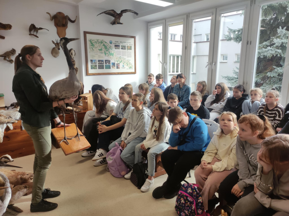 Kolejnym punktem programu były zajęcia w Oddziale Zespołu Lubelskich Parków Krajobrazowych, poświęcone tematowi „Fauna Parku Krajobrazowego Podlaski Przełom Bugu”. Uczniowie poznali bogactwo przyrodnicze naszego regionu oraz ciekawostki dotyczące gatunków zwierząt zamieszkujących okoliczne tereny.