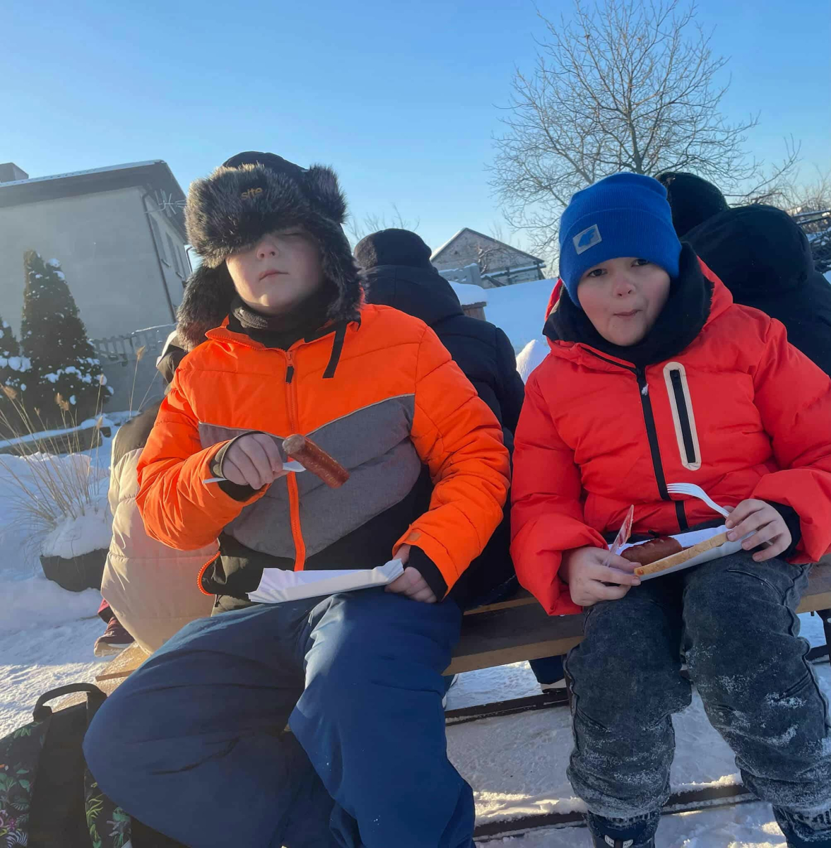 Po kuligu wszyscy z radością zgromadzili się przy ognisku. Ciepło ognia, zapach pieczonych kiełbasek, gorąca herbata oraz wspólnie spędzony czas z wychowawcą i rodzicami sprawiły, że mimo mrozu było naprawdę ciepło – przede wszystkim na sercu!