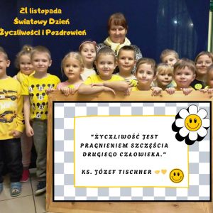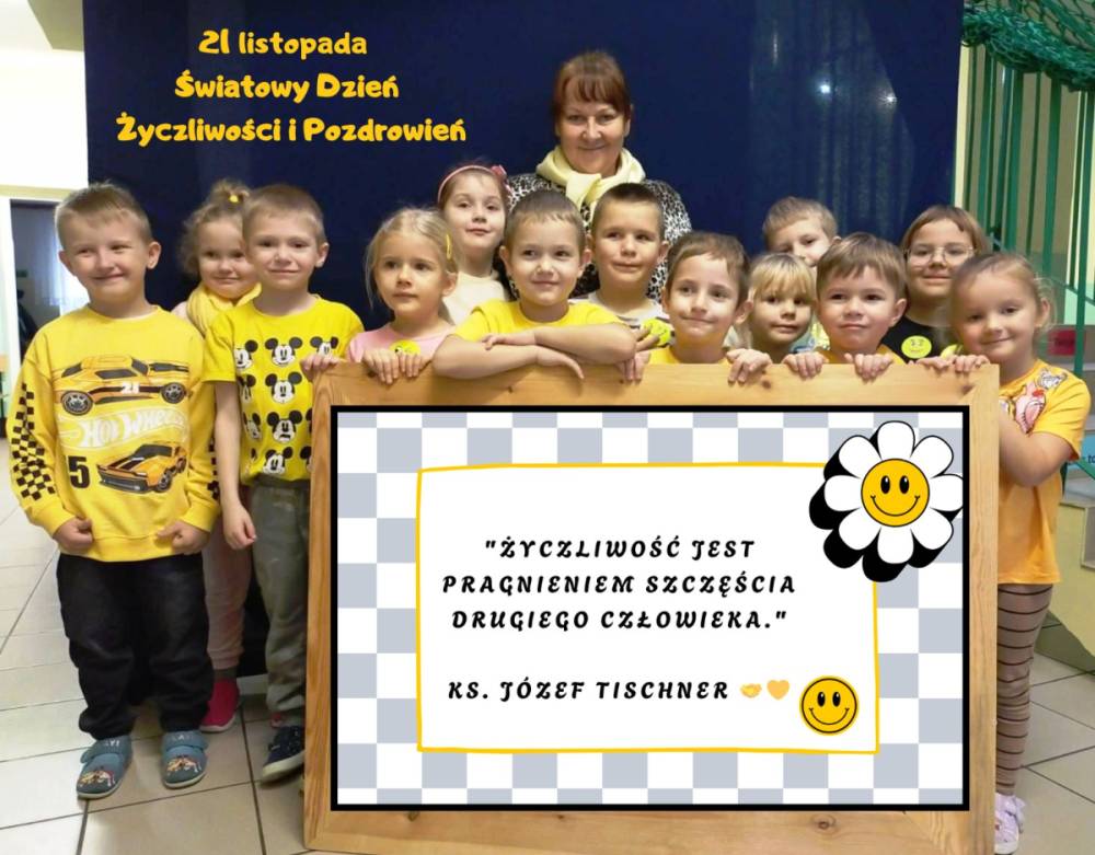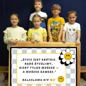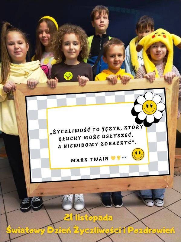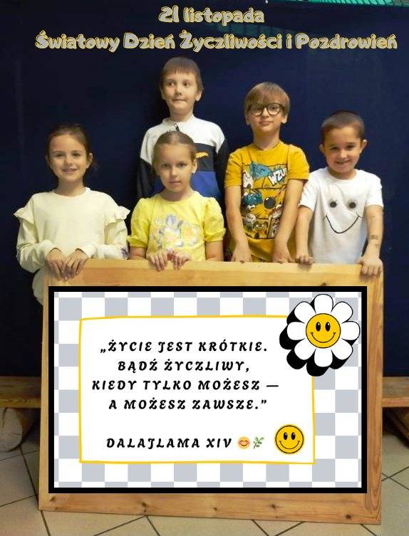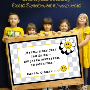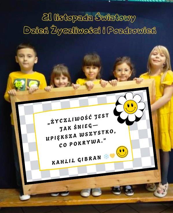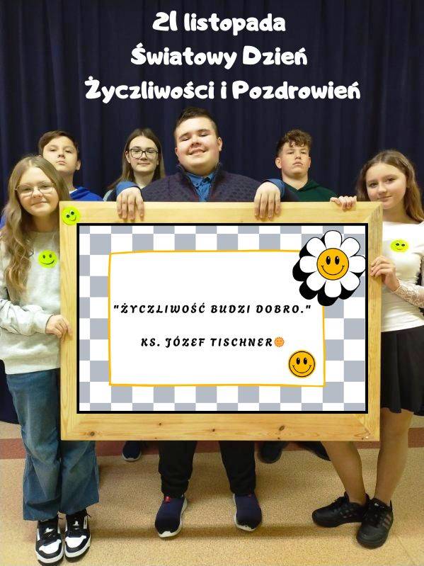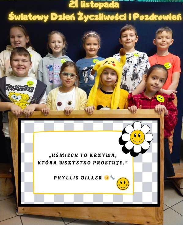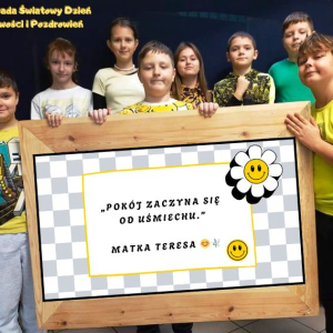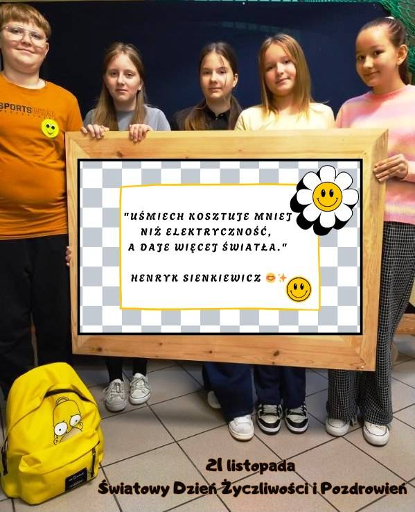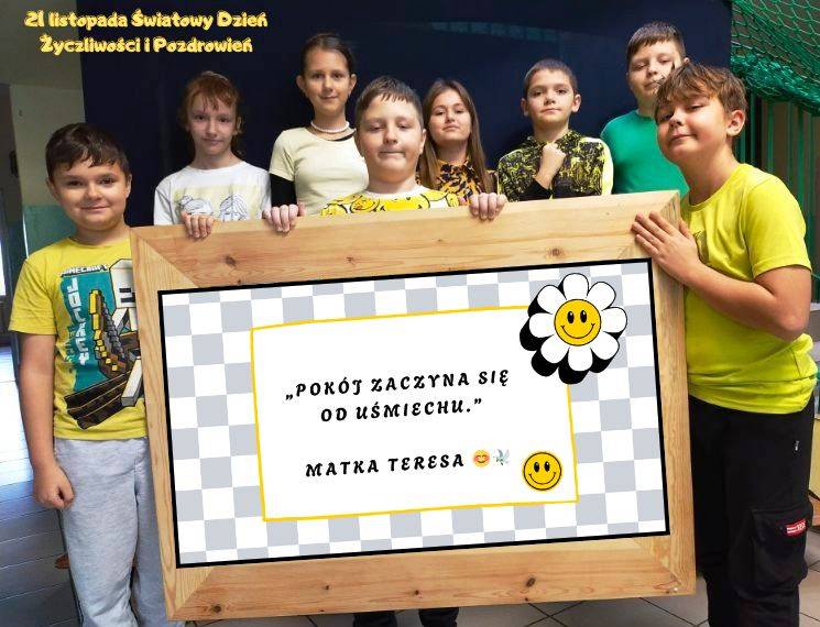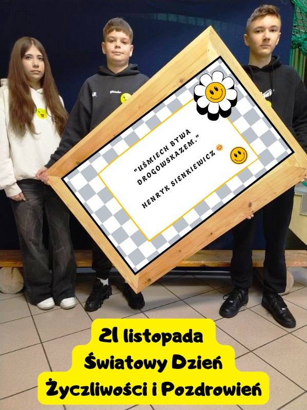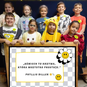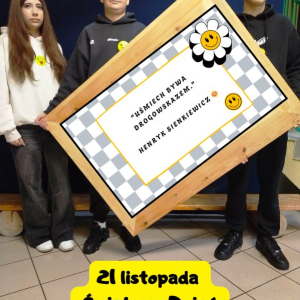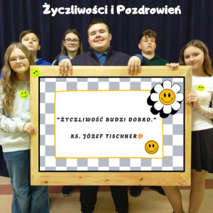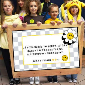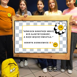 To był jeden z najbardziej uśmiechniętych i słonecznych dni w całym roku szkolnym! Już od rana na korytarzach dominował kolor żółty, symbole uśmiechu i pozytywnej energii – uczniowie oraz nauczyciele przyszli w żółtych strojach lub z elementami radości, takimi jak naklejki, opaski i emblematy z uśmiechem. Tegoroczne obchody zostały zorganizowane przez Samorząd Uczniowski, który stworzył atmosferę pełną życzliwości, dobrych słów i ciepłych gestów. Dzięki wsparciu sponsora każdy uczeń otrzymał słodki upominek – lizaka jako symbol małego gestu, który może wywołać uśmiech i poprawić komuś dzień. Najważniejszym elementem tegorocznego święta była jednak wyjątkowa inicjatywa: każda klasa przygotowała cytat o życzliwości, dobroci lub uśmiechu. Wszystkie zdjęcia tworzą wspaniałą, inspirującą galerię dobrych słów i serdecznych przesłań. Zapraszamy do oglądania, inspirowania się i… szerzenia dobra każdego dnia!